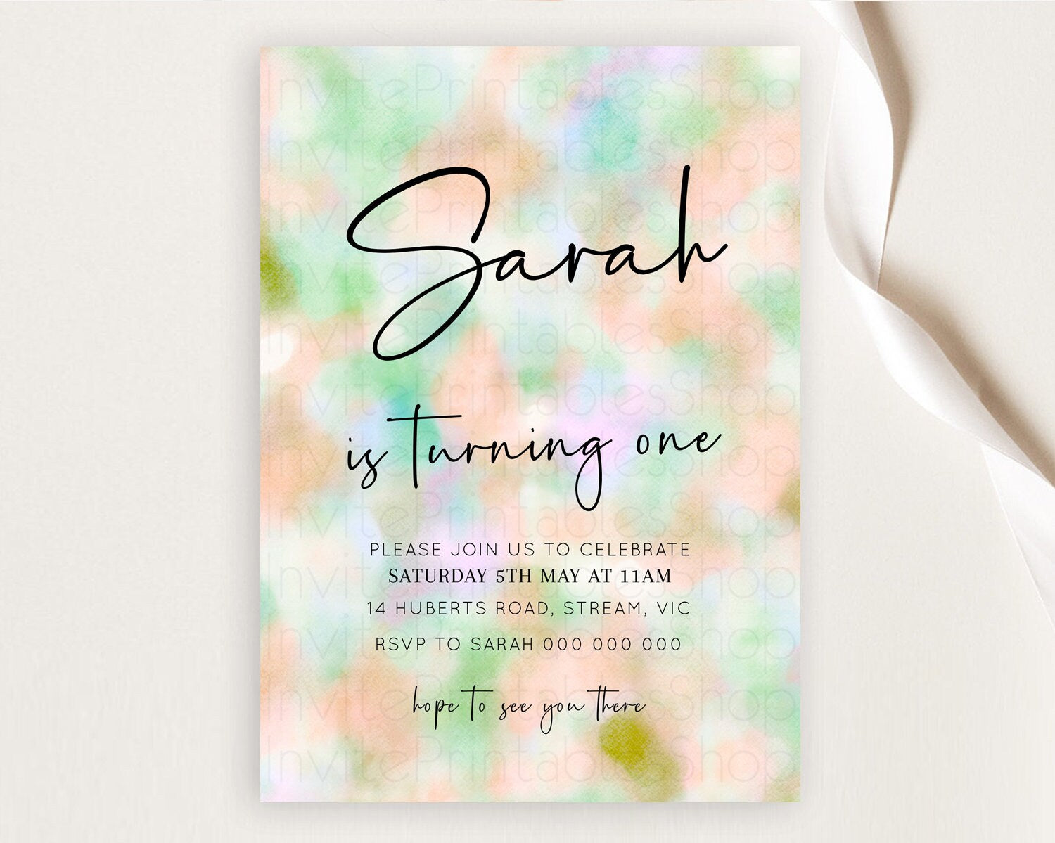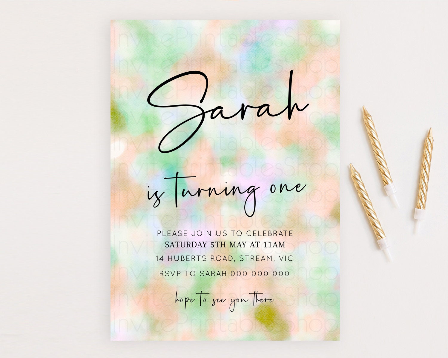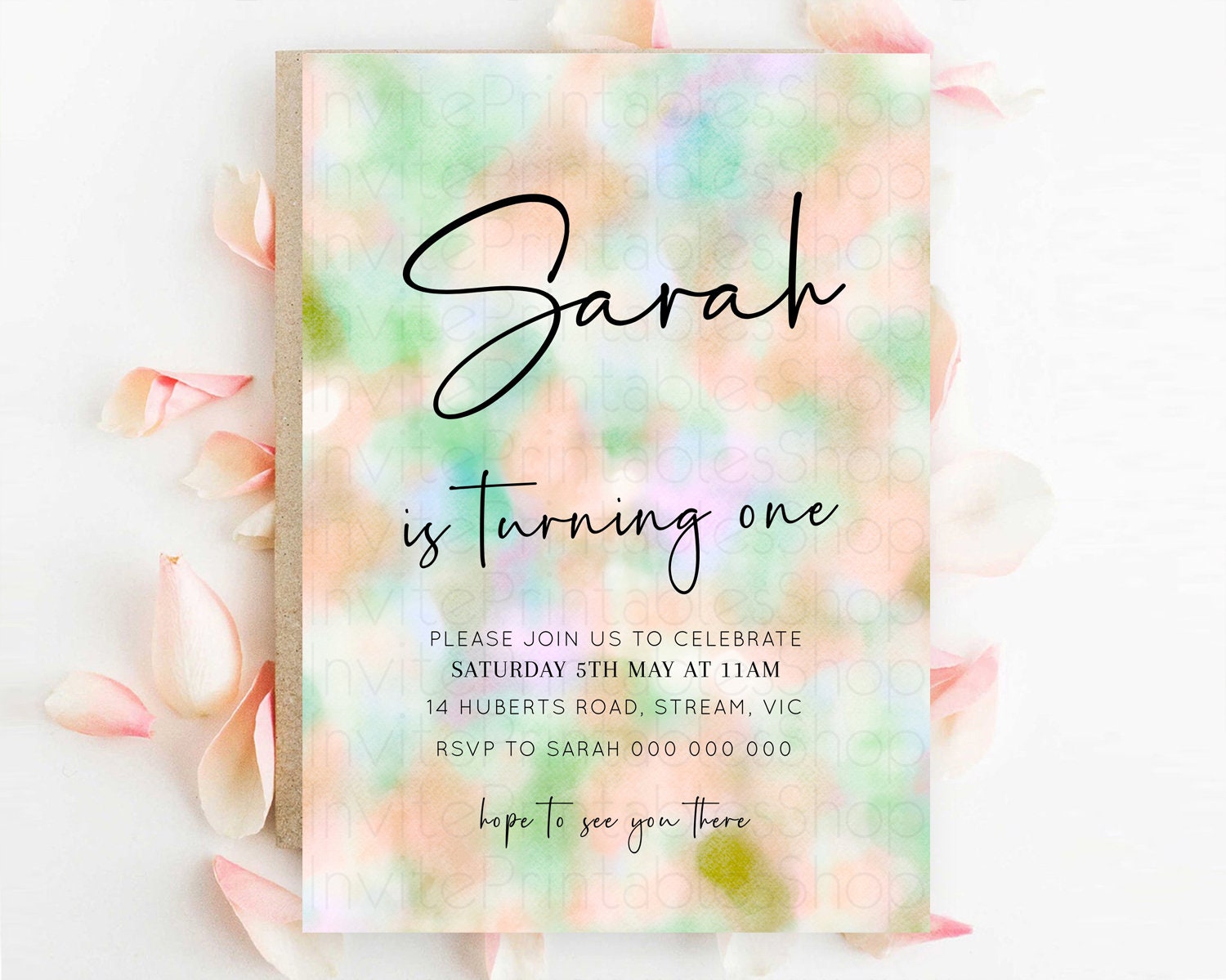 Rainbow Birthday Invitation Colorful Pastel Watercolor Invitation Gold Glitter Sprinkles Ombre Pastel 1st 2nd 3rd Birthday D10693