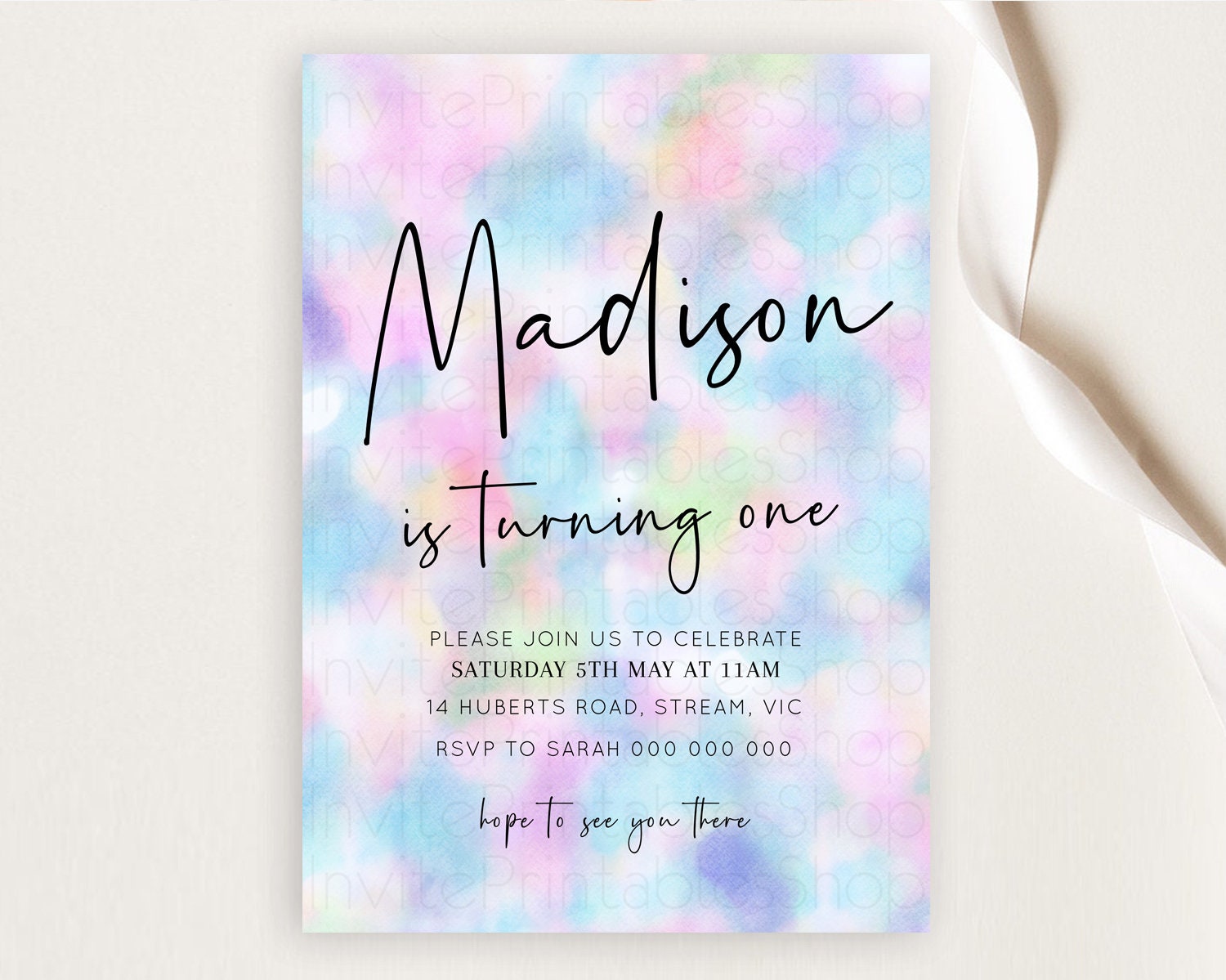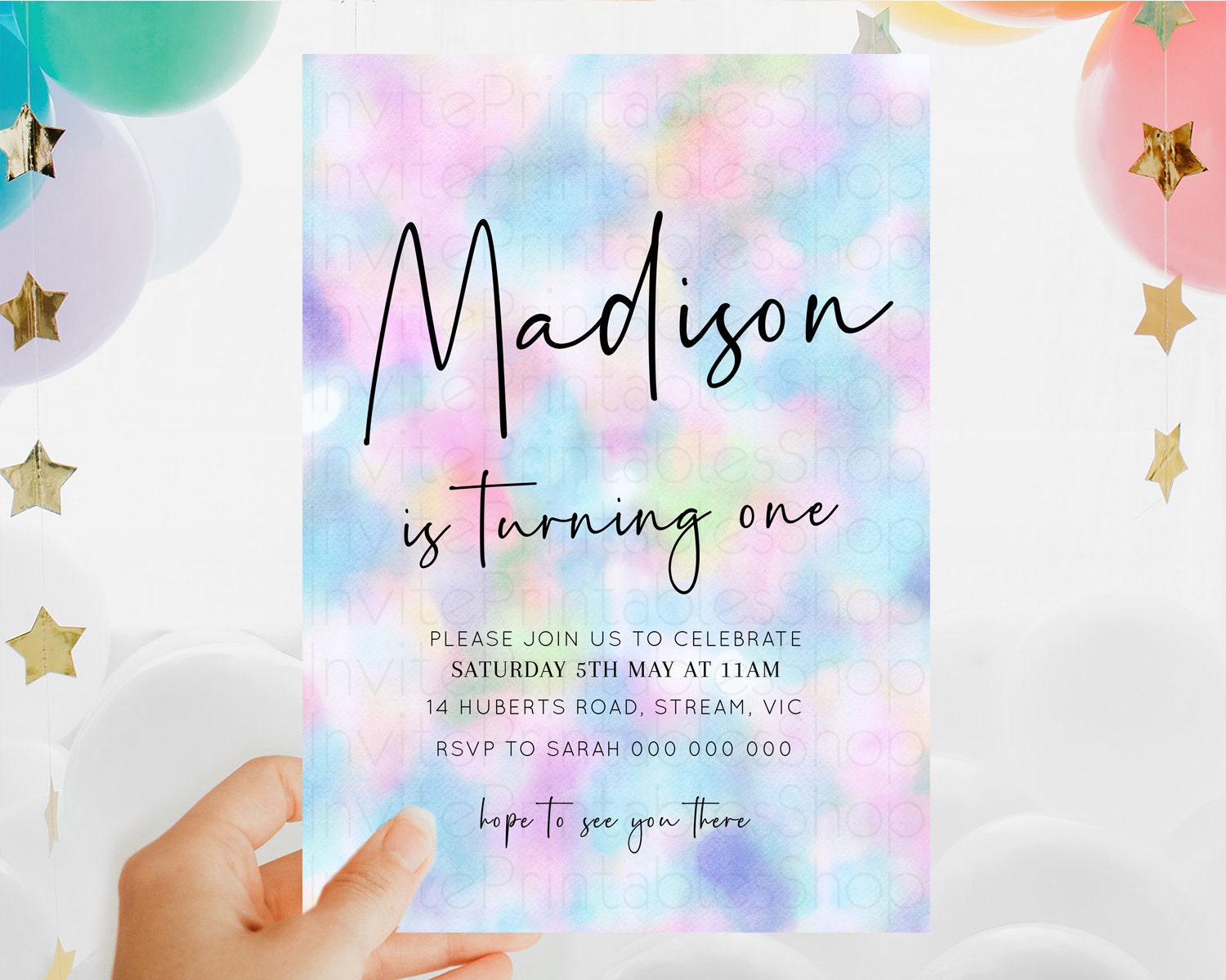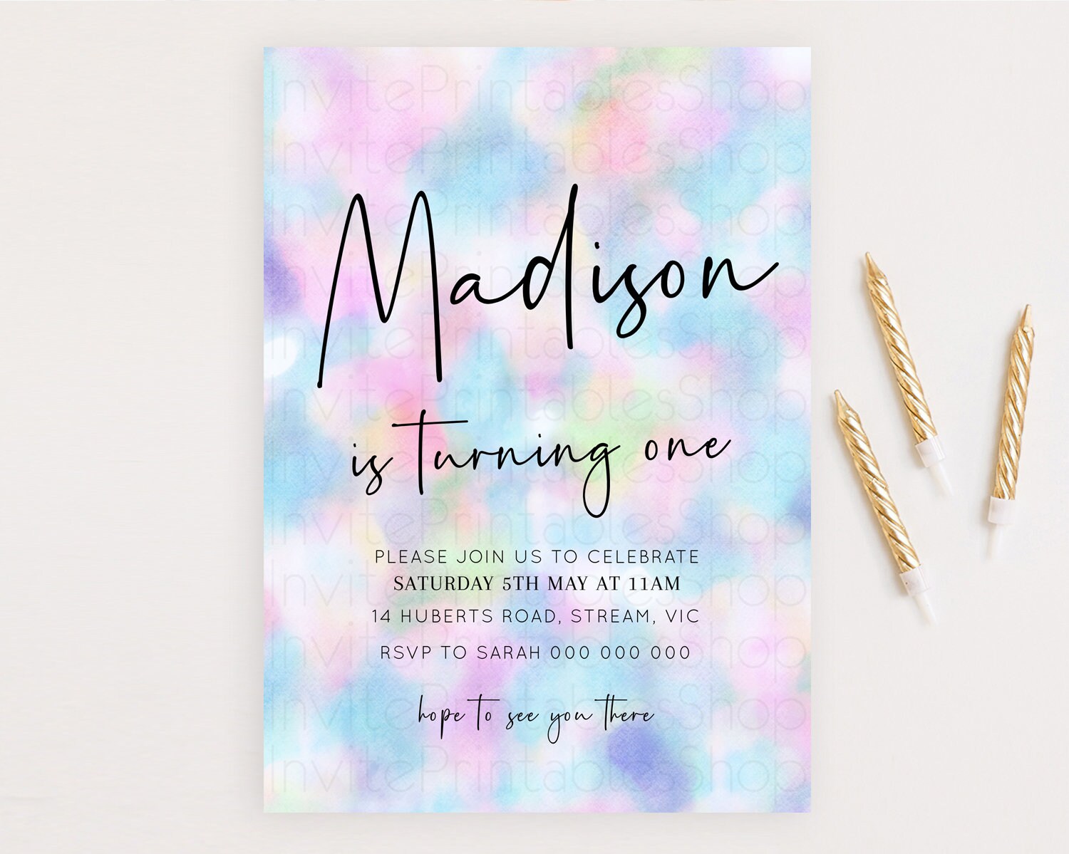 Rainbow Birthday Invitation Colorful Pastel Watercolor Invitation Gold Glitter Sprinkles Ombre Pastel 1st 2nd 3rd Birthday D10694