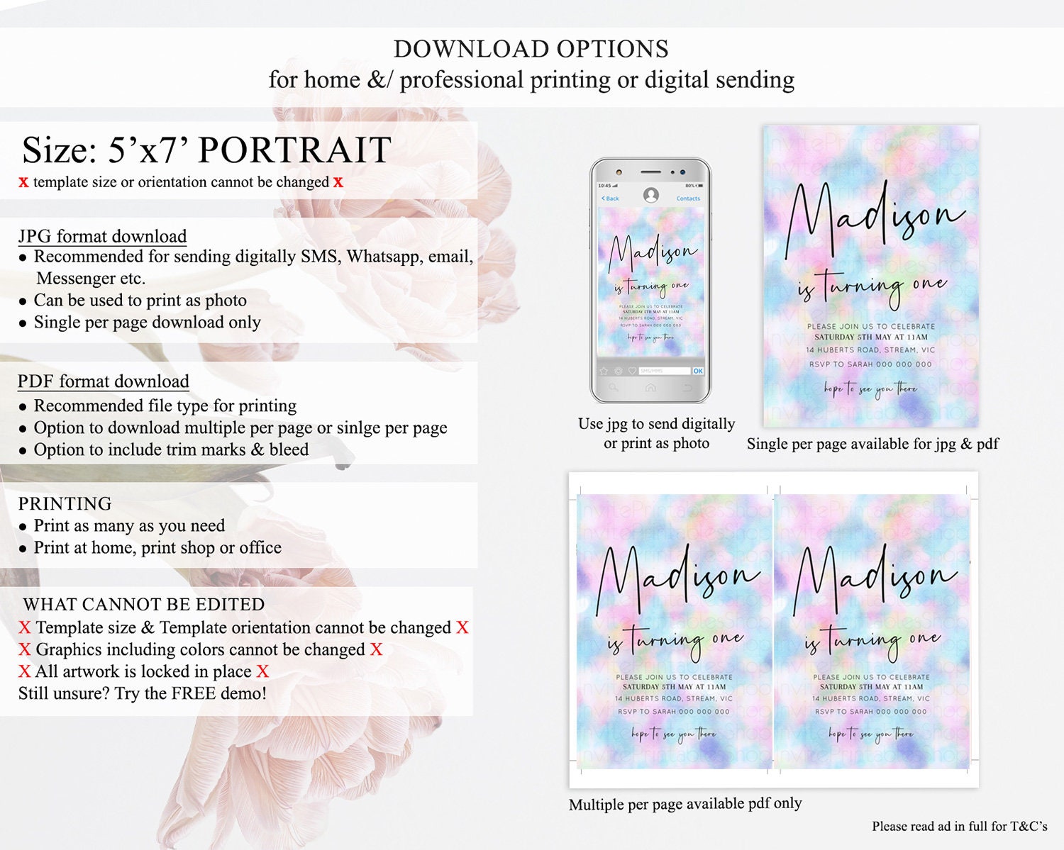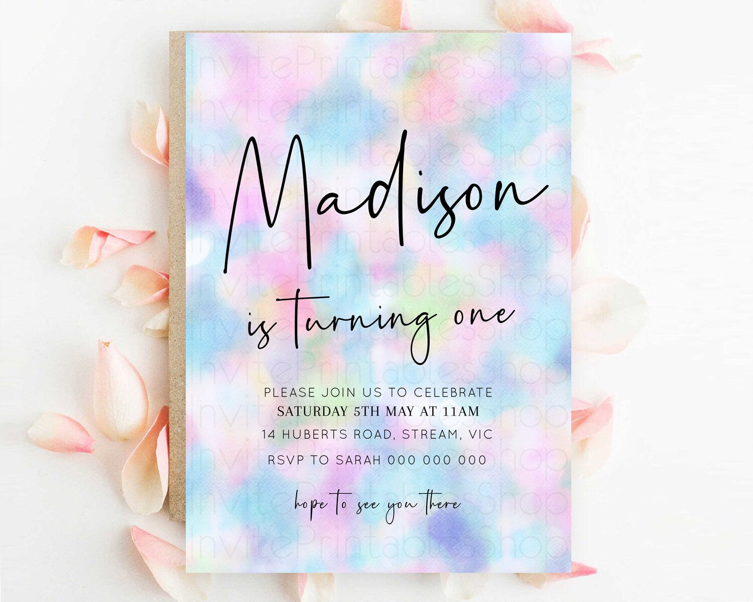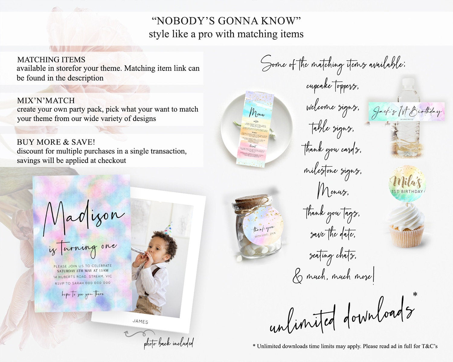 Rainbow Birthday Invitation Colorful Pastel Watercolor Invitation Gold Glitter Sprinkles Ombre Pastel 1st 2nd 3rd Birthday D10694