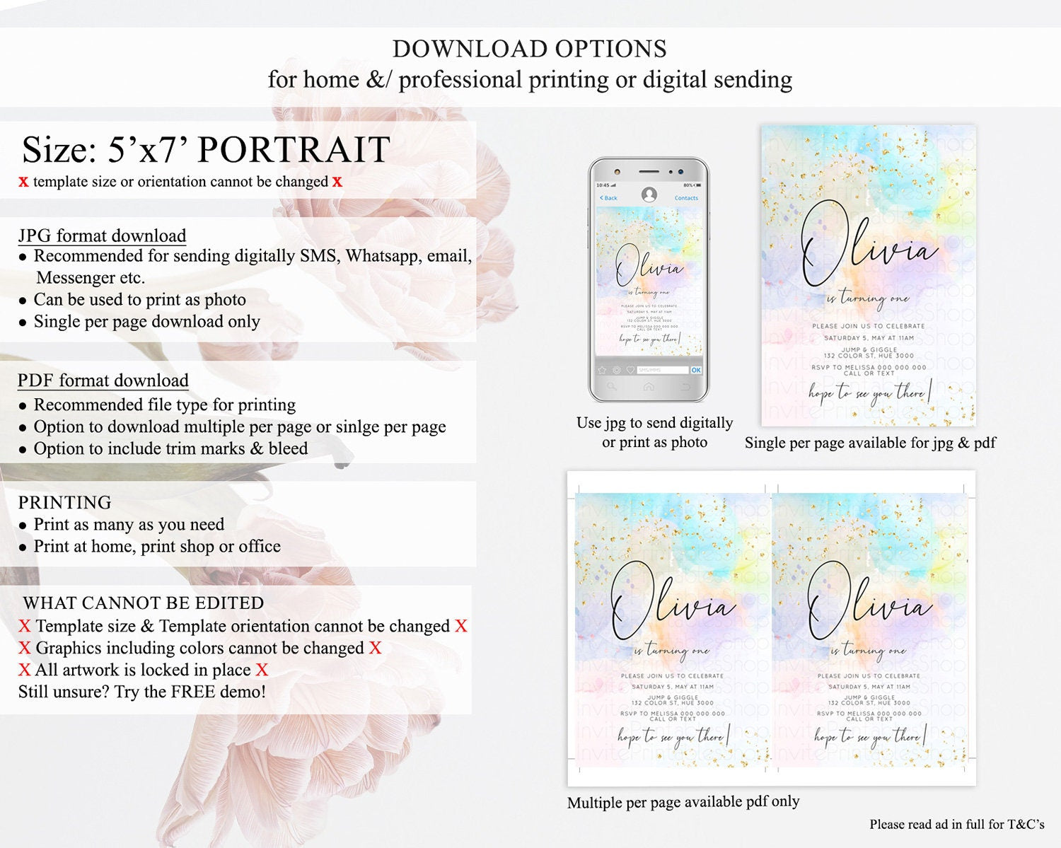 • Template size & orientation cannot be changed. Please use the demo link to confirm this product suits your needs.