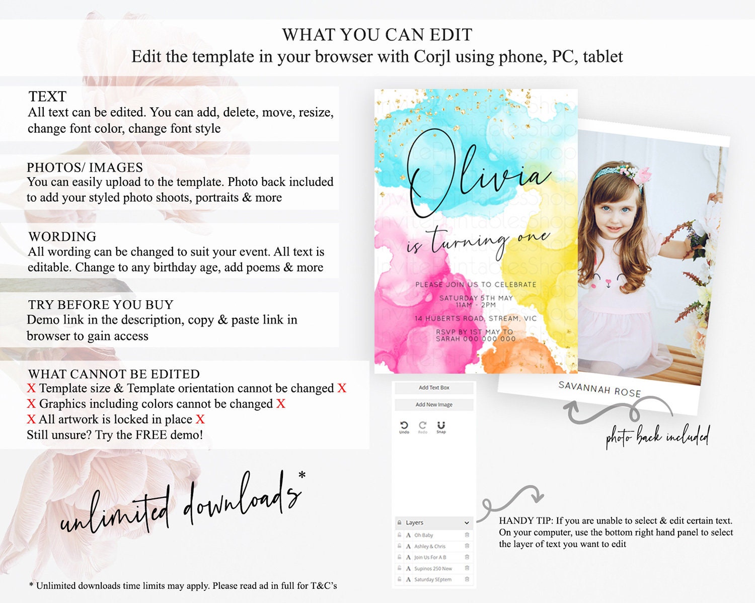 • After purchase, Corjl emails your editing link. Allow up to 15 minutes for delivery.