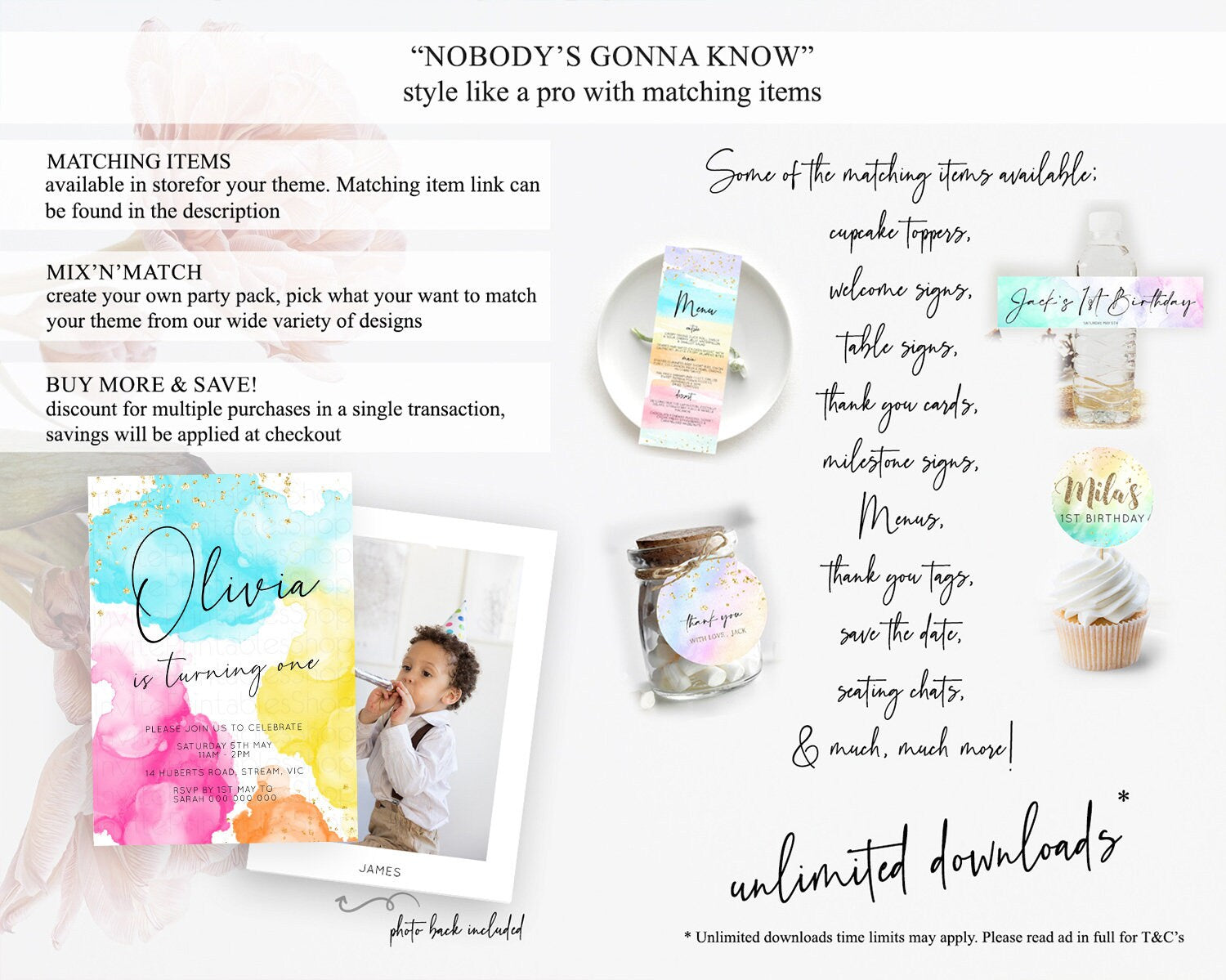 Rainbow Birthday Invitation Colorful Pastel Watercolor Invitation Gold Glitter Sprinkles Ombre Pastel 1st 2nd 3rd Birthday D10898