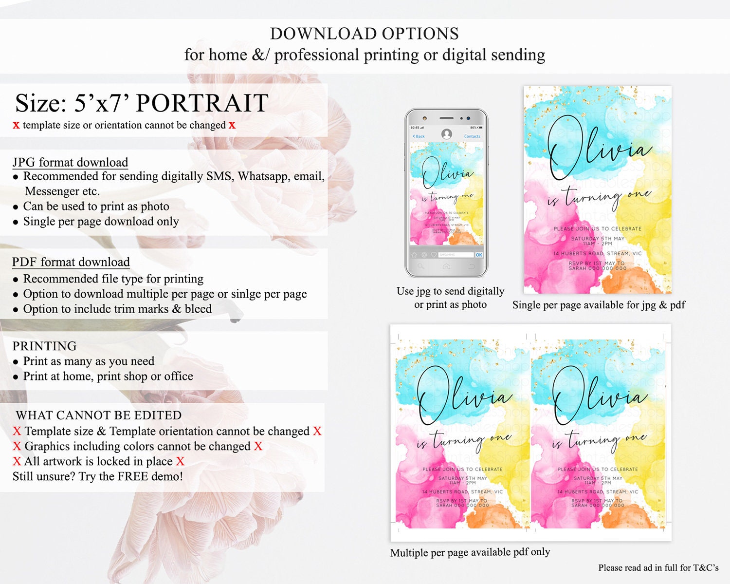 • Template size & orientation cannot be changed. Please use the demo link to confirm this product suits your needs.