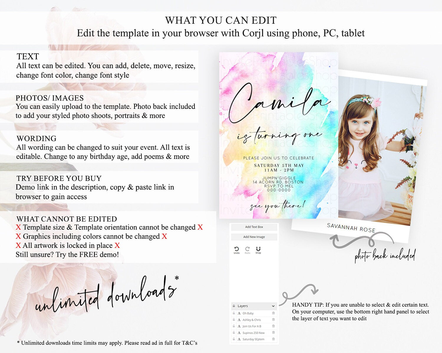 • After purchase, Corjl emails your editing link. Allow up to 15 minutes for delivery.
