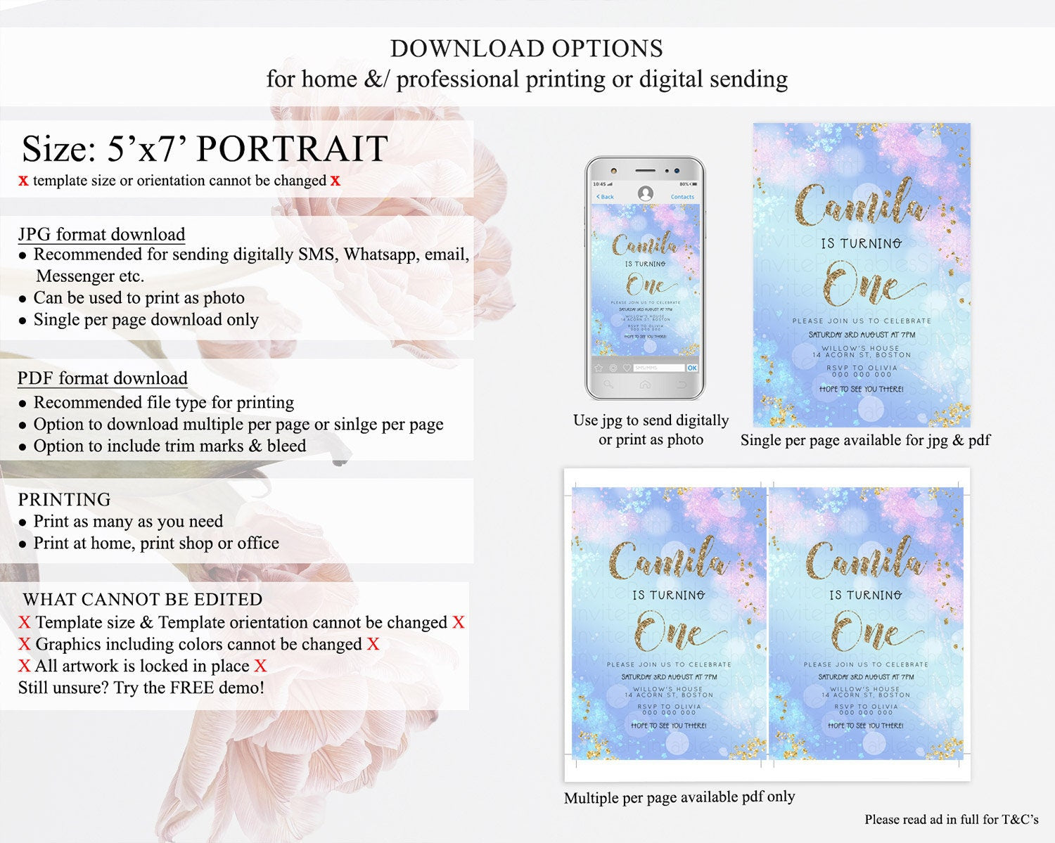 • Template size & orientation cannot be changed. Please use the demo link to confirm this product suits your needs.