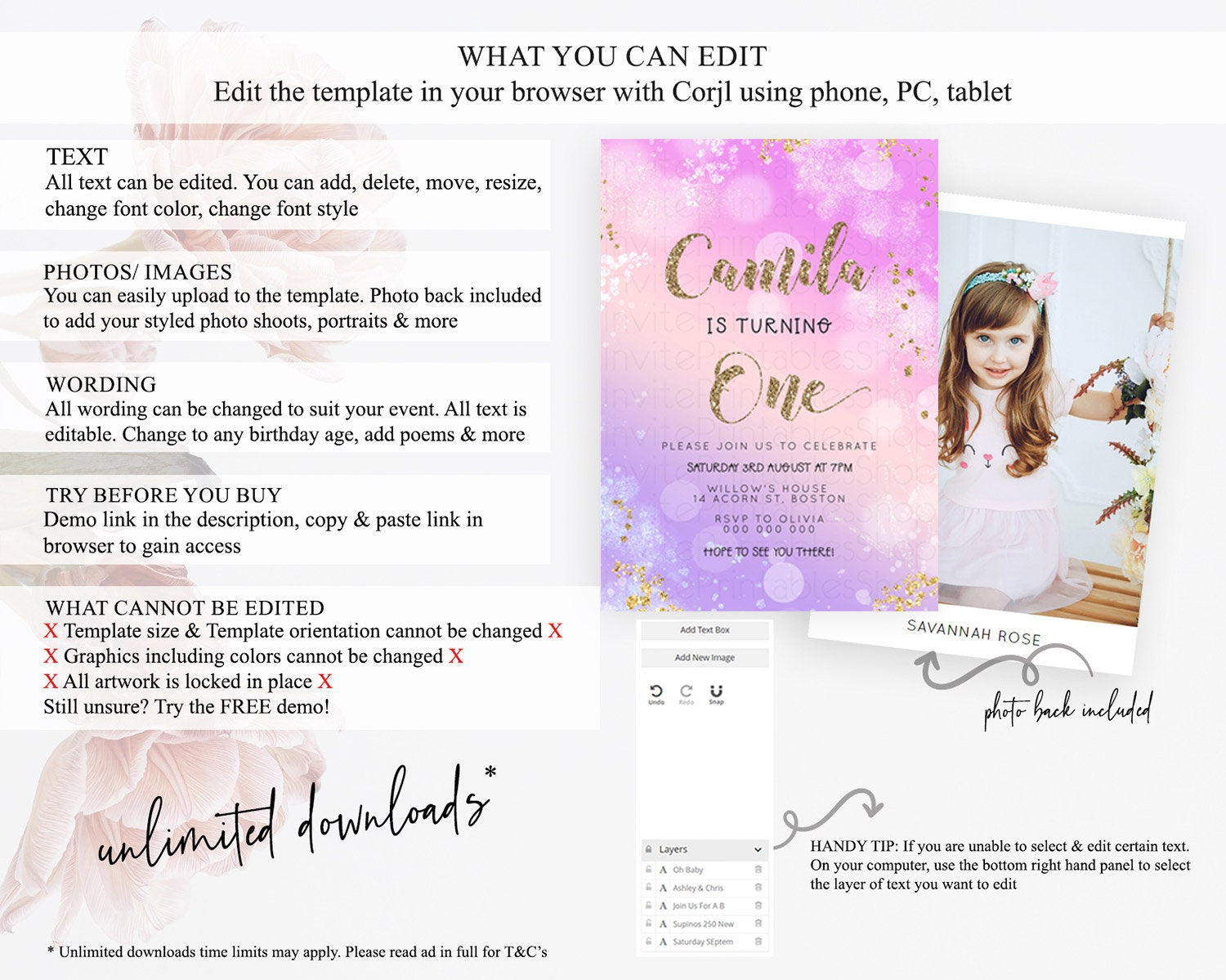 • After purchase, Corjl emails your editing link. Allow up to 15 minutes for delivery.
