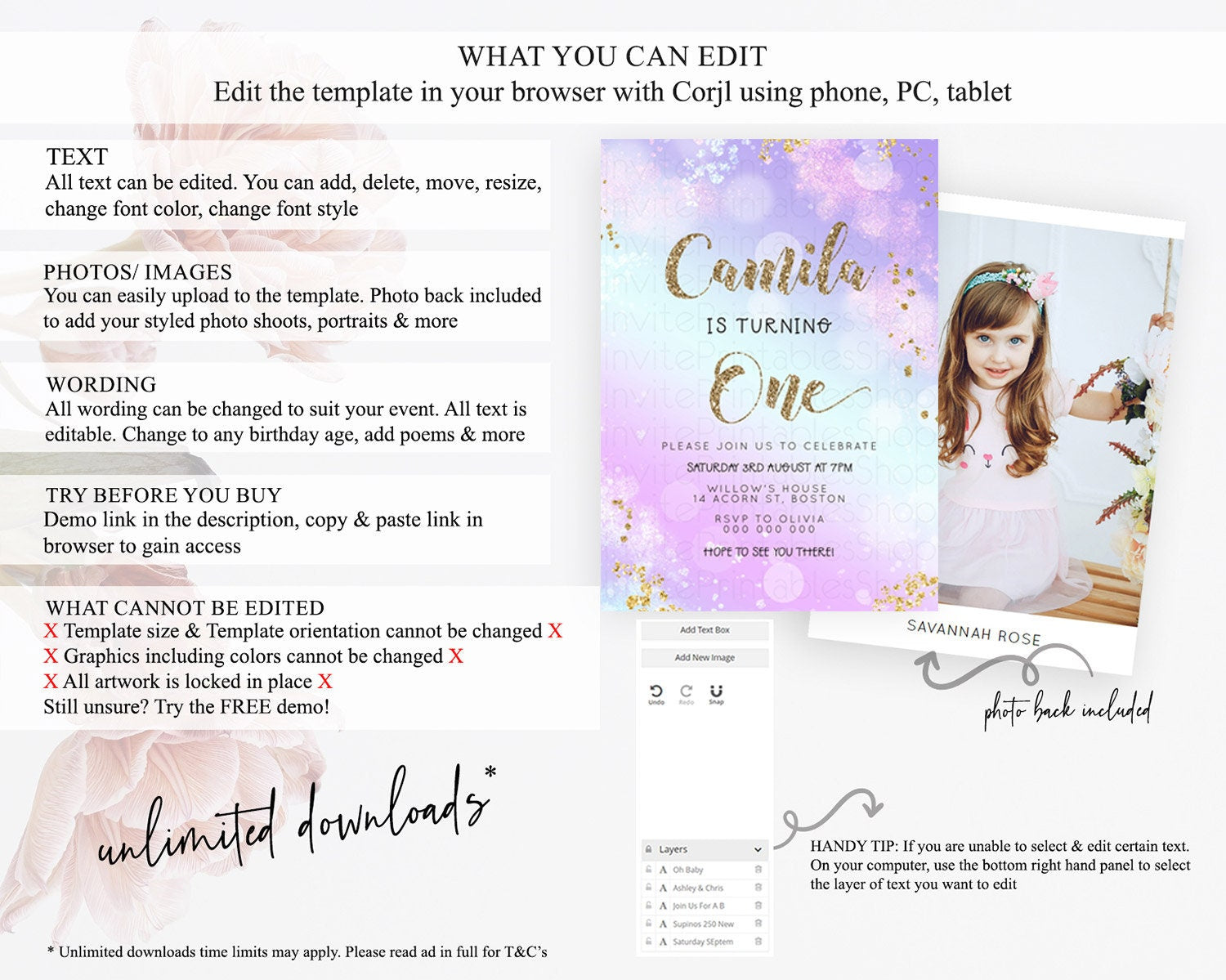 • After purchase, Corjl emails your editing link. Allow up to 15 minutes for delivery.