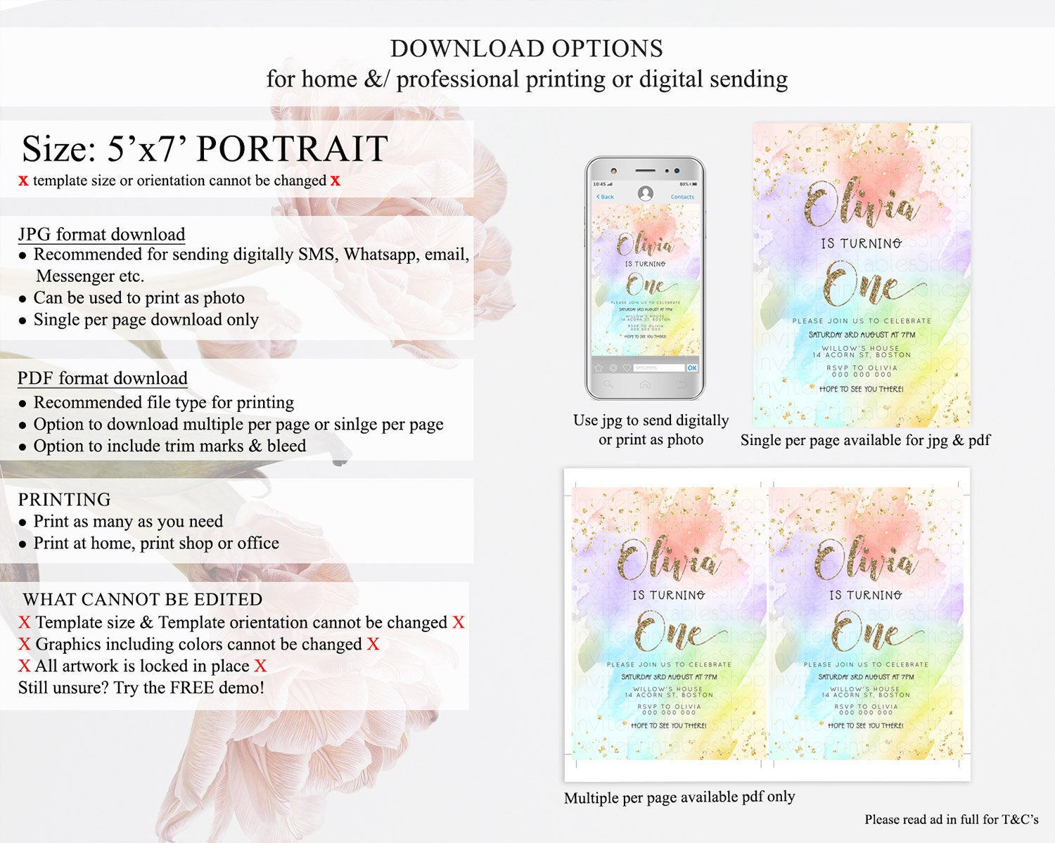 • Template size & orientation cannot be changed. Please use the demo link to confirm this product suits your needs.