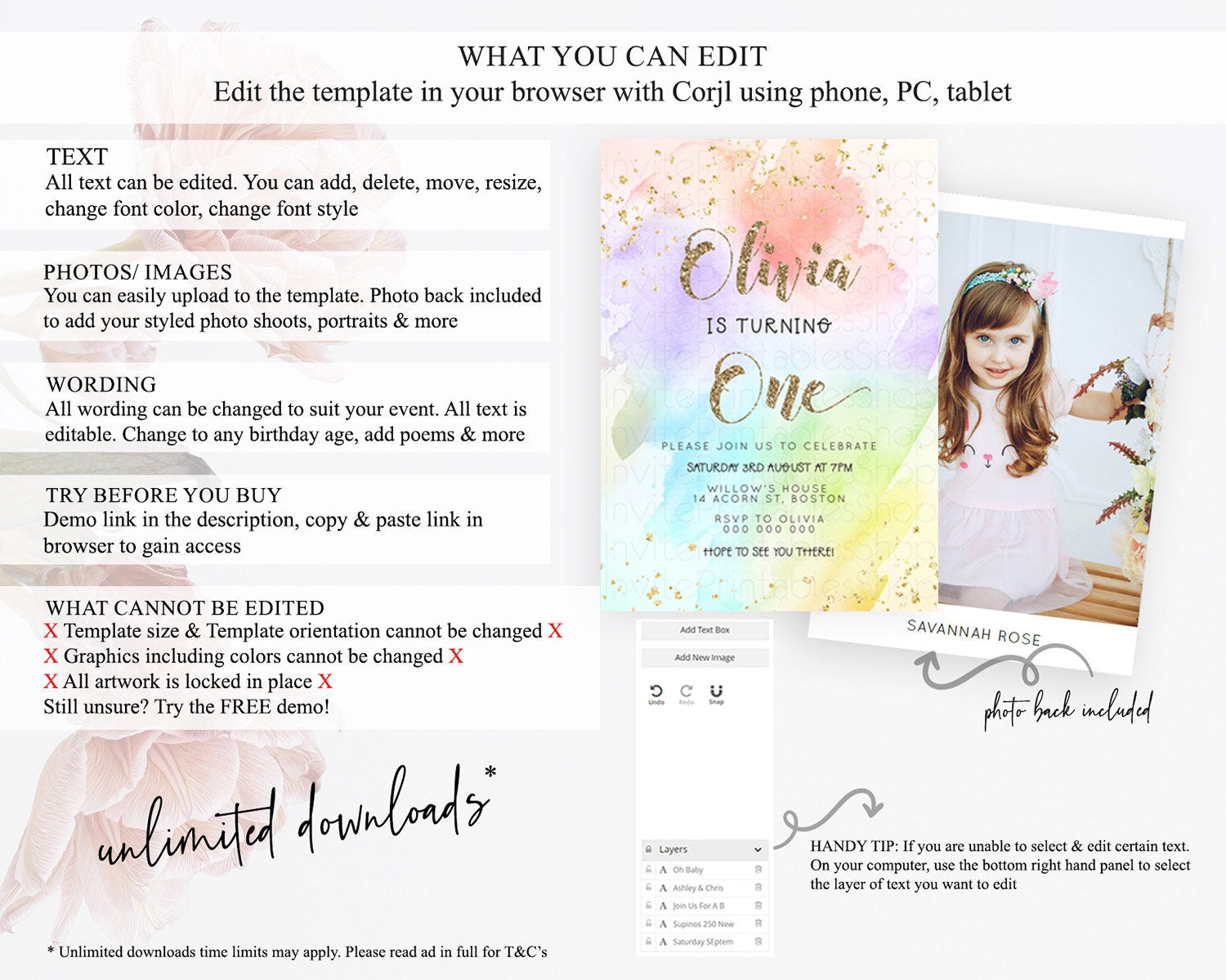 • After purchase, Corjl emails your editing link. Allow up to 15 minutes for delivery.