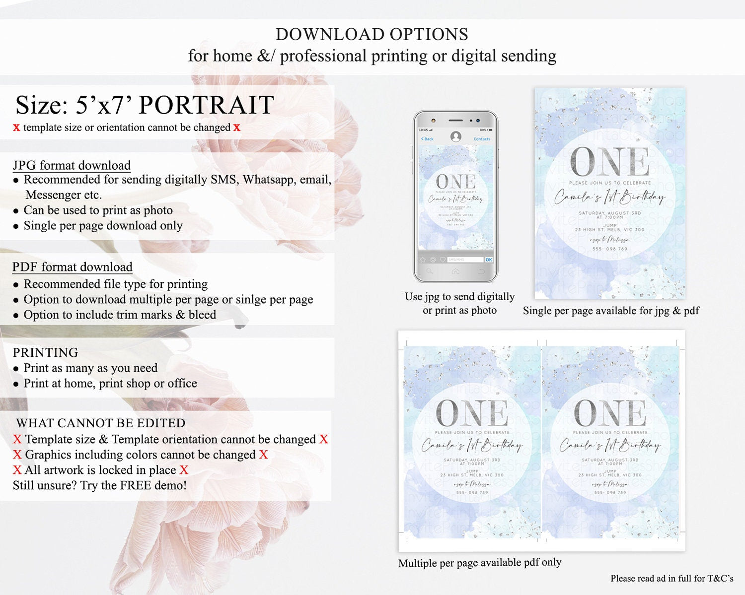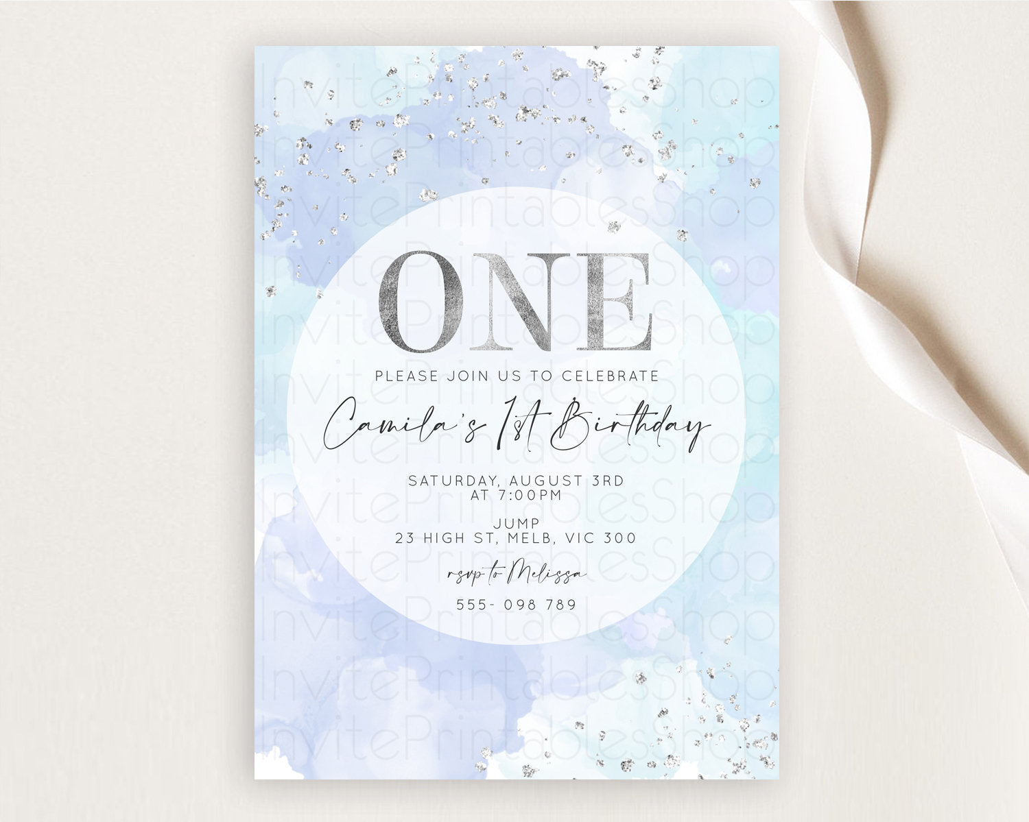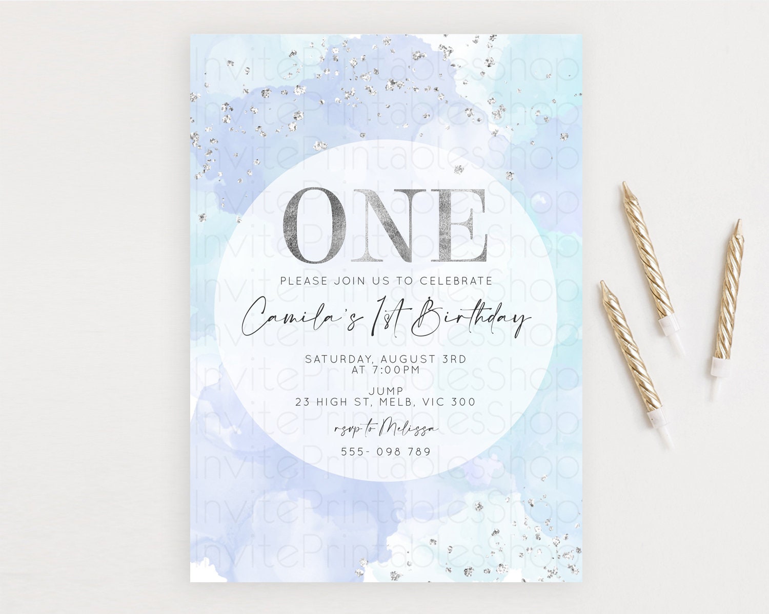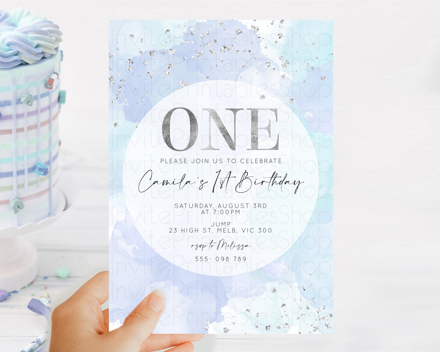 Rainbow Birthday Invitation Colorful Pastel Watercolor Silver Glitter Sprinkles Ombre Pastel Invitation 1st 2nd 3rd First Birthday D10628