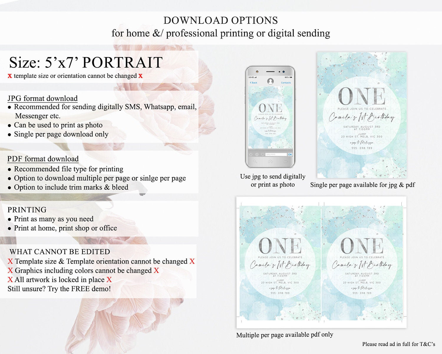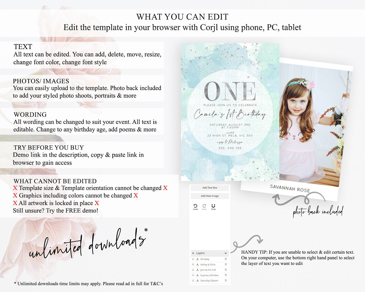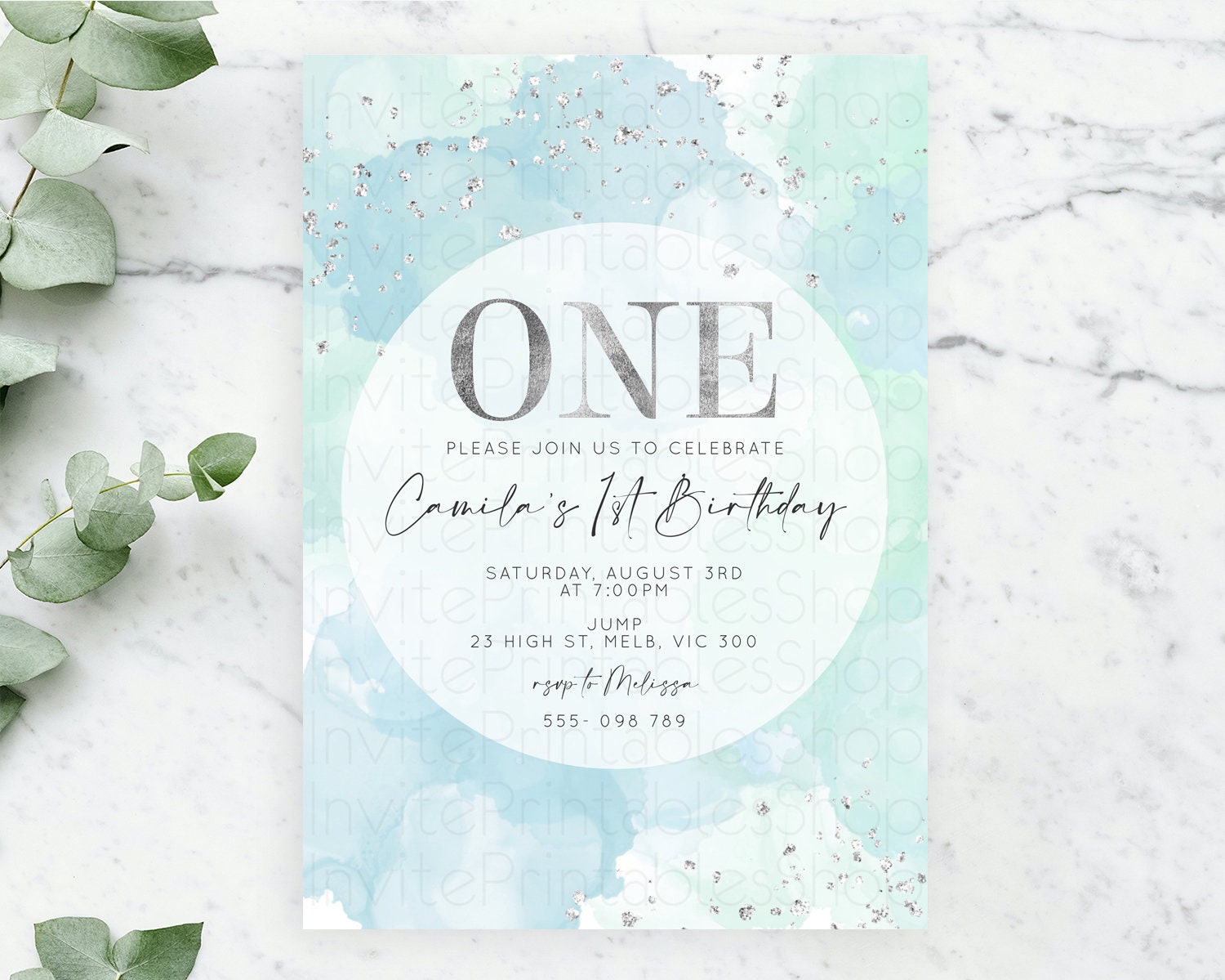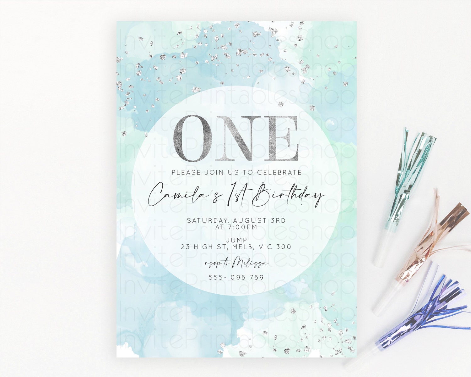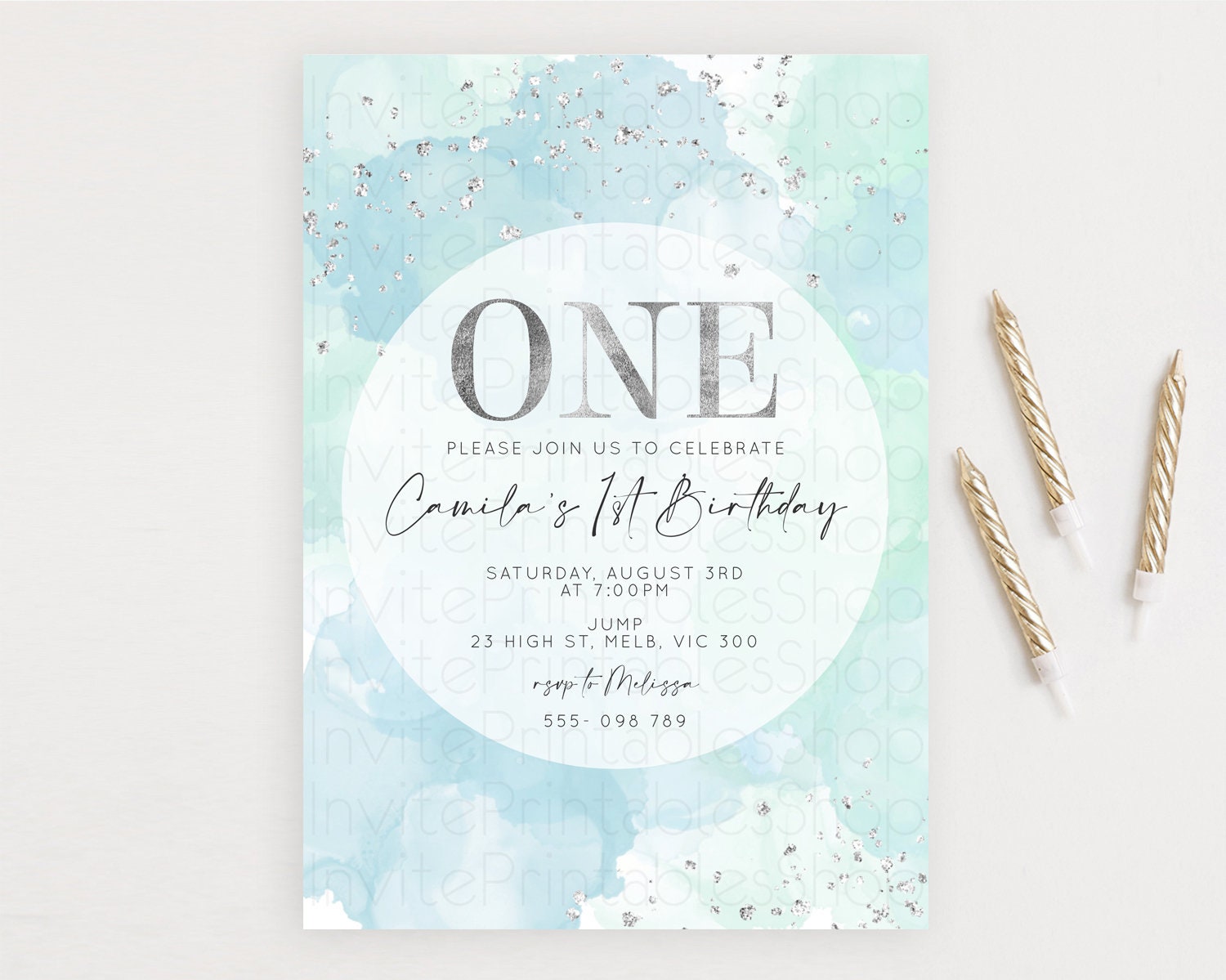 Rainbow Birthday Invitation Colorful Pastel Watercolor Silver Glitter Sprinkles Ombre Pastel Invitation 1st 2nd 3rd First Birthday D10630
