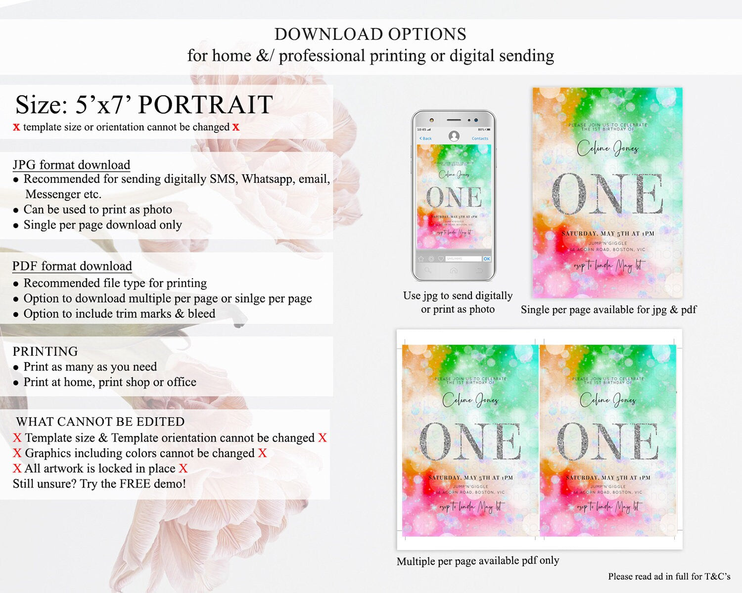 • Template size & orientation cannot be changed. Please use the demo link to confirm this product suits your needs.