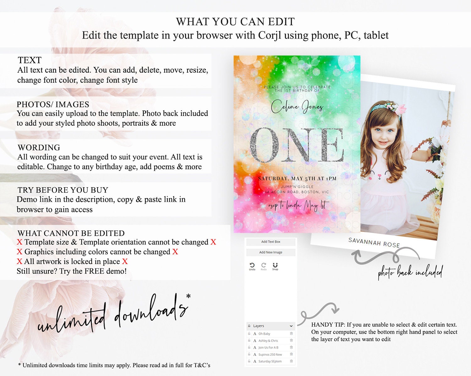 • After purchase, Corjl emails your editing link. Allow up to 15 minutes for delivery.