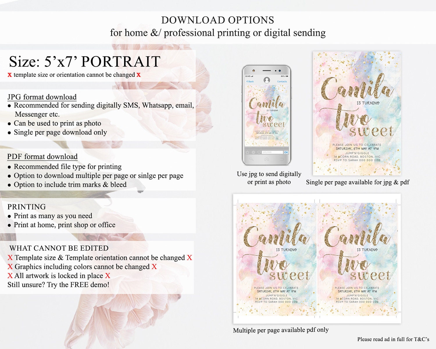 • Template size & orientation cannot be changed. Please use the demo link to confirm this product suits your needs.
