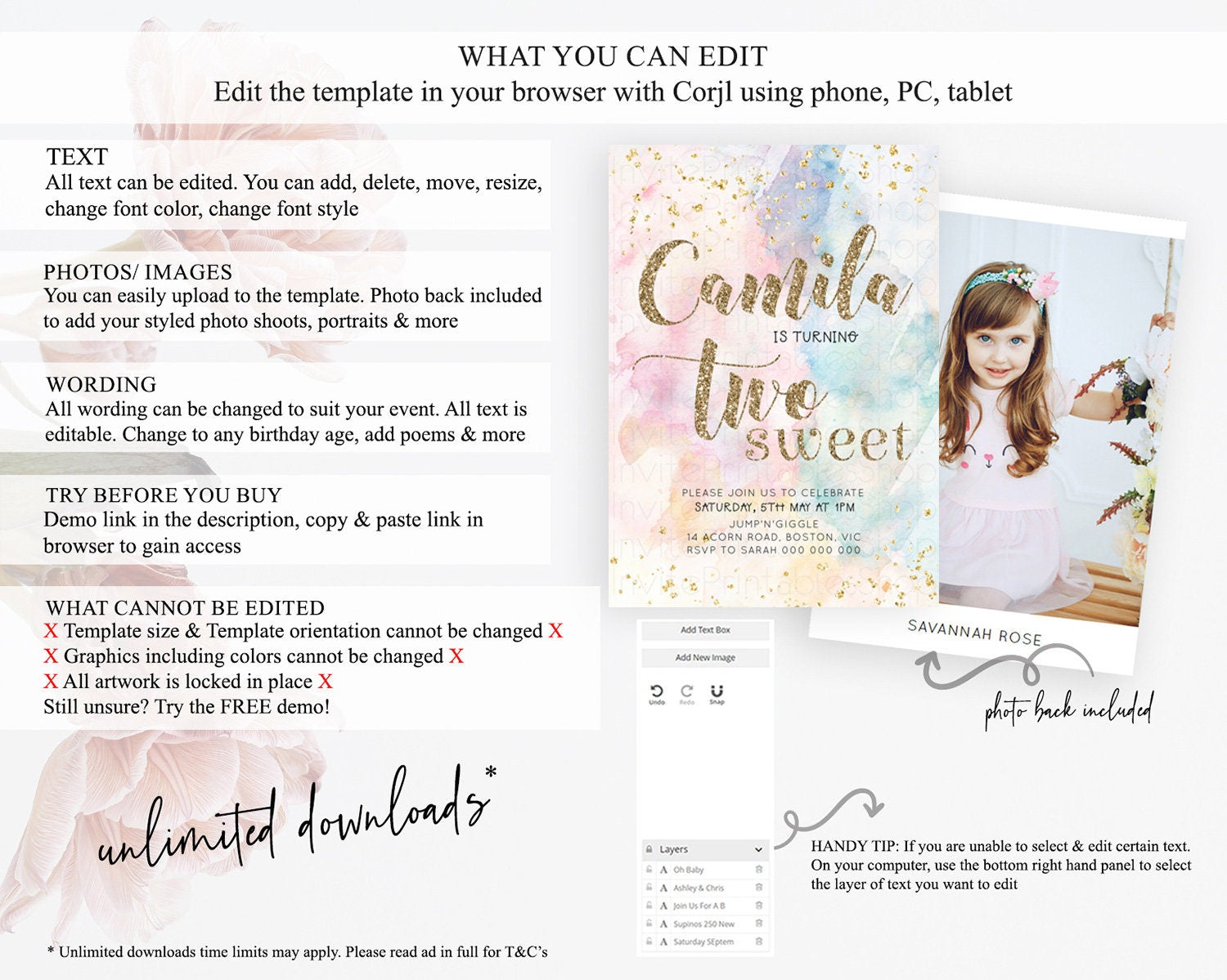 • After purchase, Corjl emails your editing link. Allow up to 15 minutes for delivery.