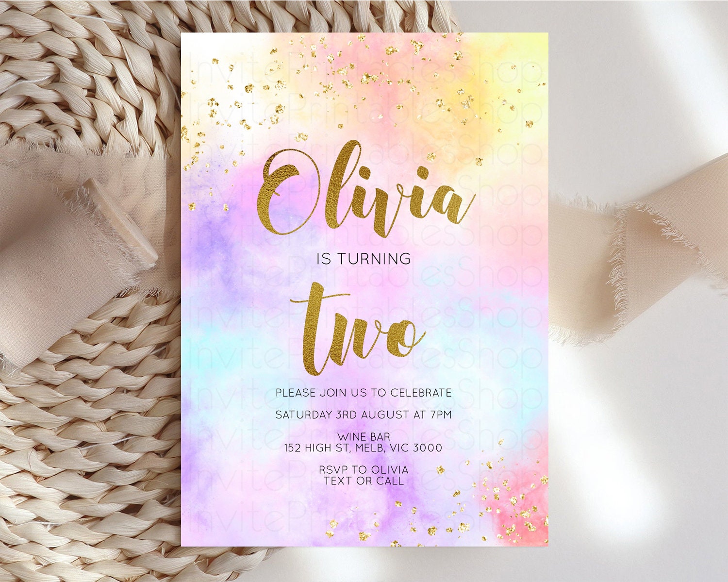 Rainbow Birthday Invitation Ombre Pastel Invitation Colorful Watercolor Splash Invite Gold Glitter Sprinkles Printable Digital Invite 499