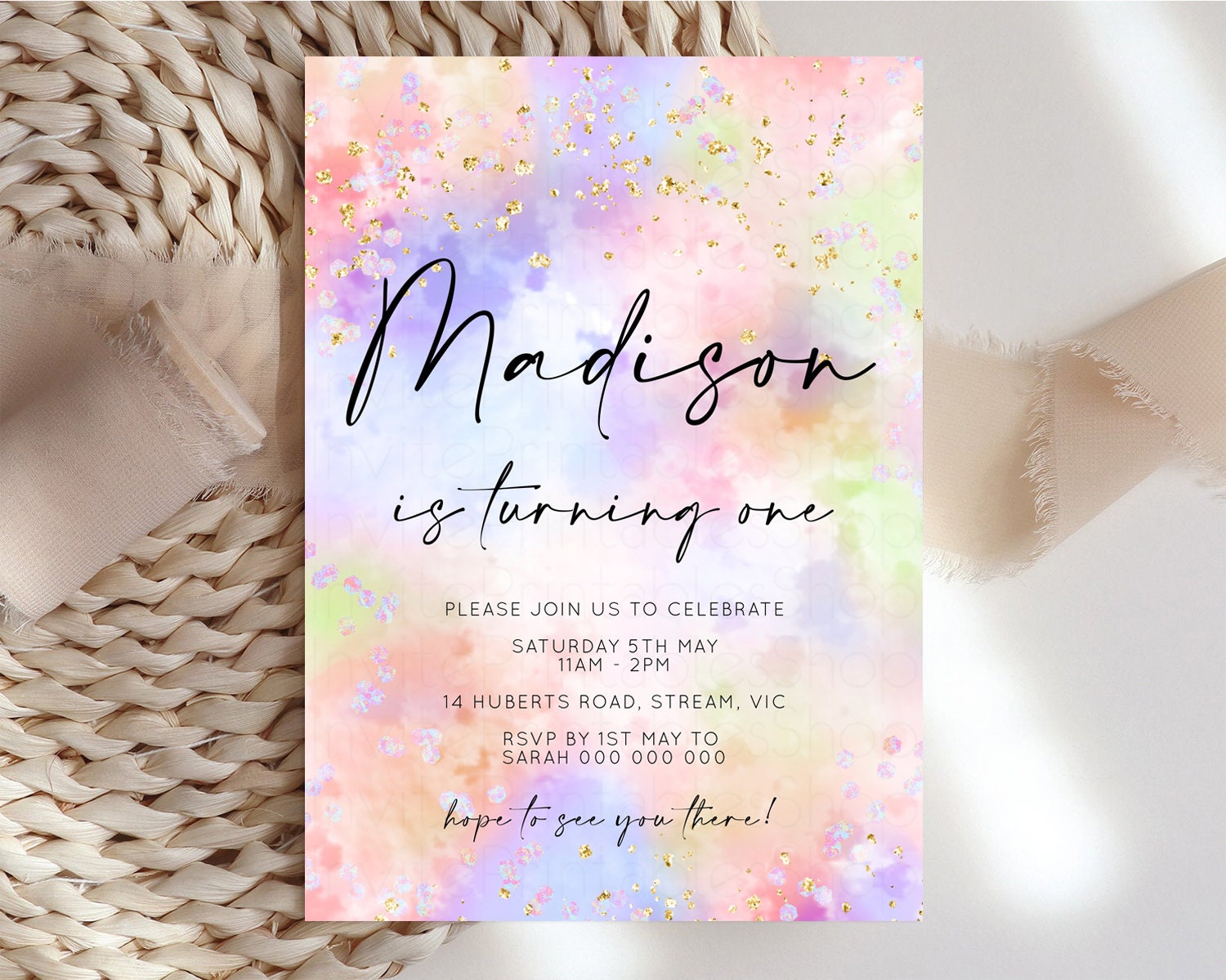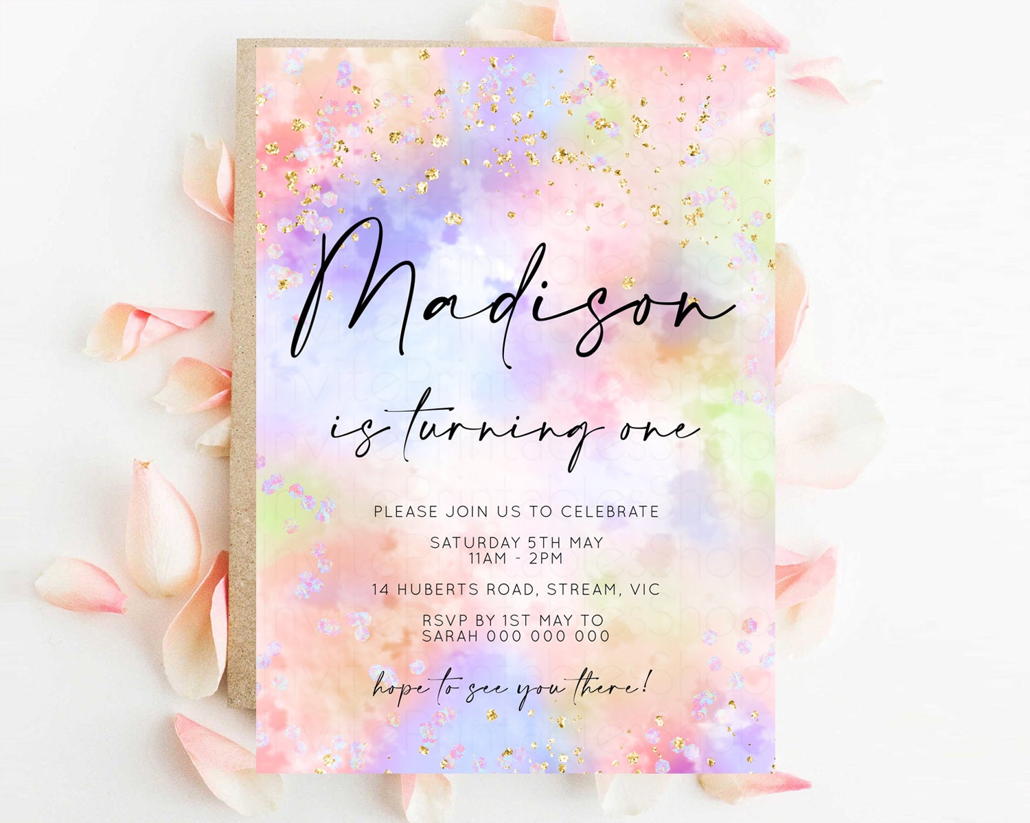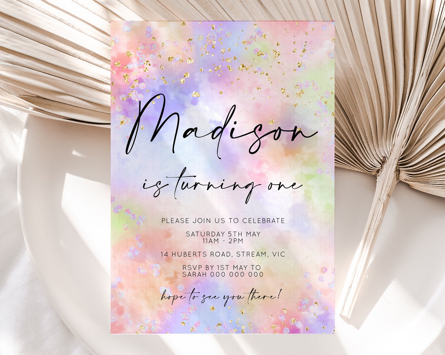 Rainbow Birthday Invitation Pastel Birthday Invitation Ombre Rainbow Invite Colorful Watercolor Invite Glitter Cloud Invite 1st 2nd 3rd K589