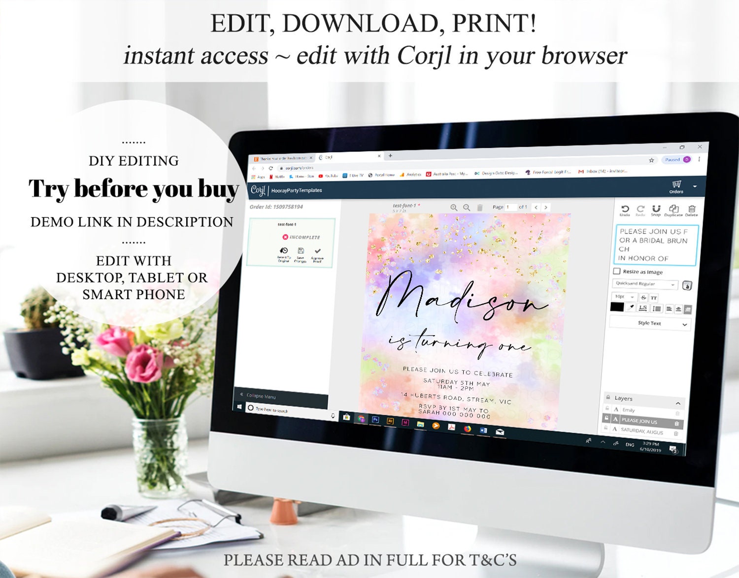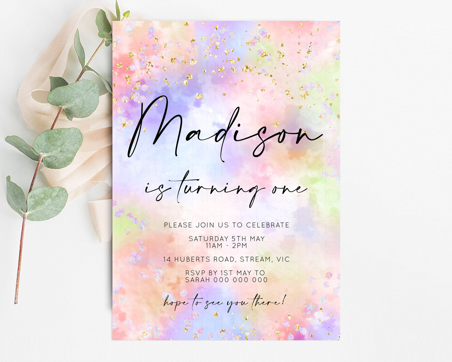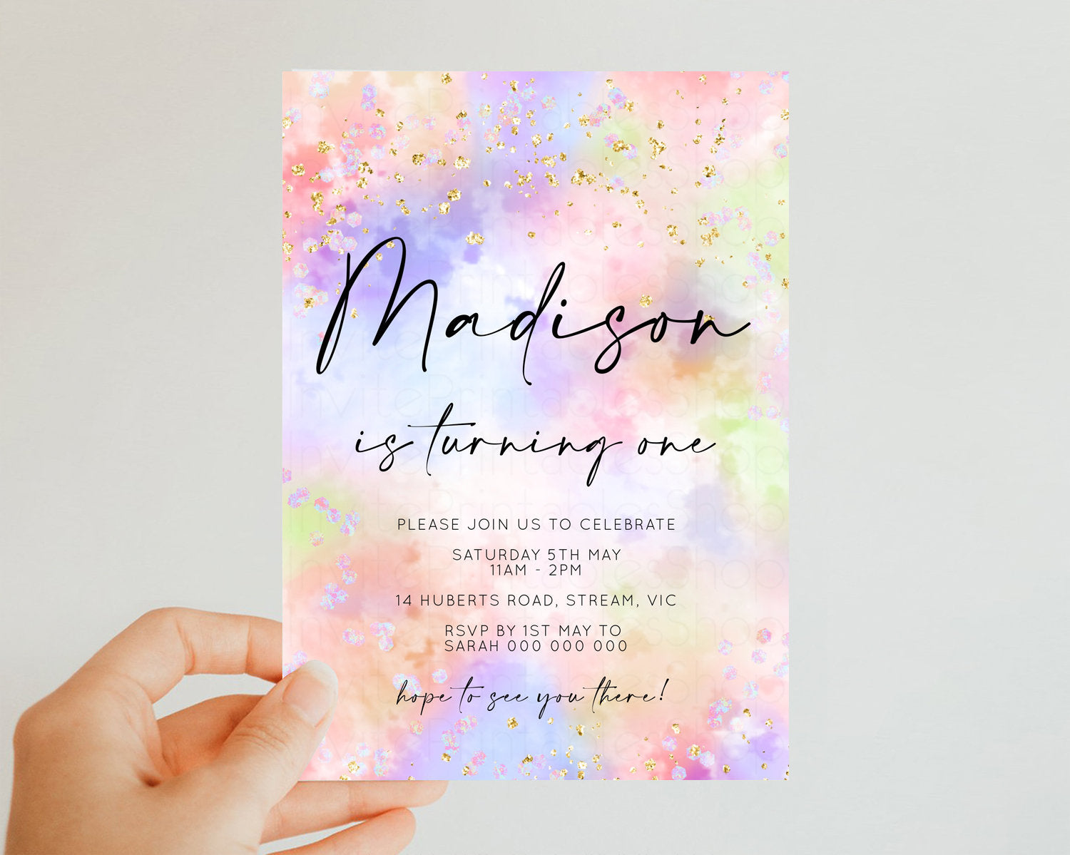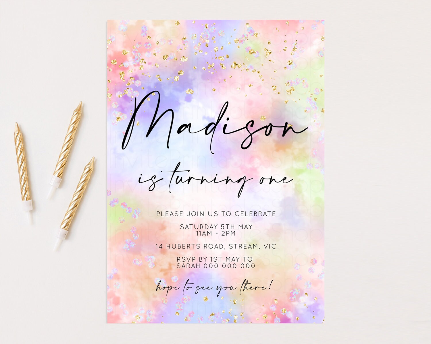 Rainbow Birthday Invitation Pastel Birthday Invitation Ombre Rainbow Invite Colorful Watercolor Invite Glitter Cloud Invite 1st 2nd 3rd K589