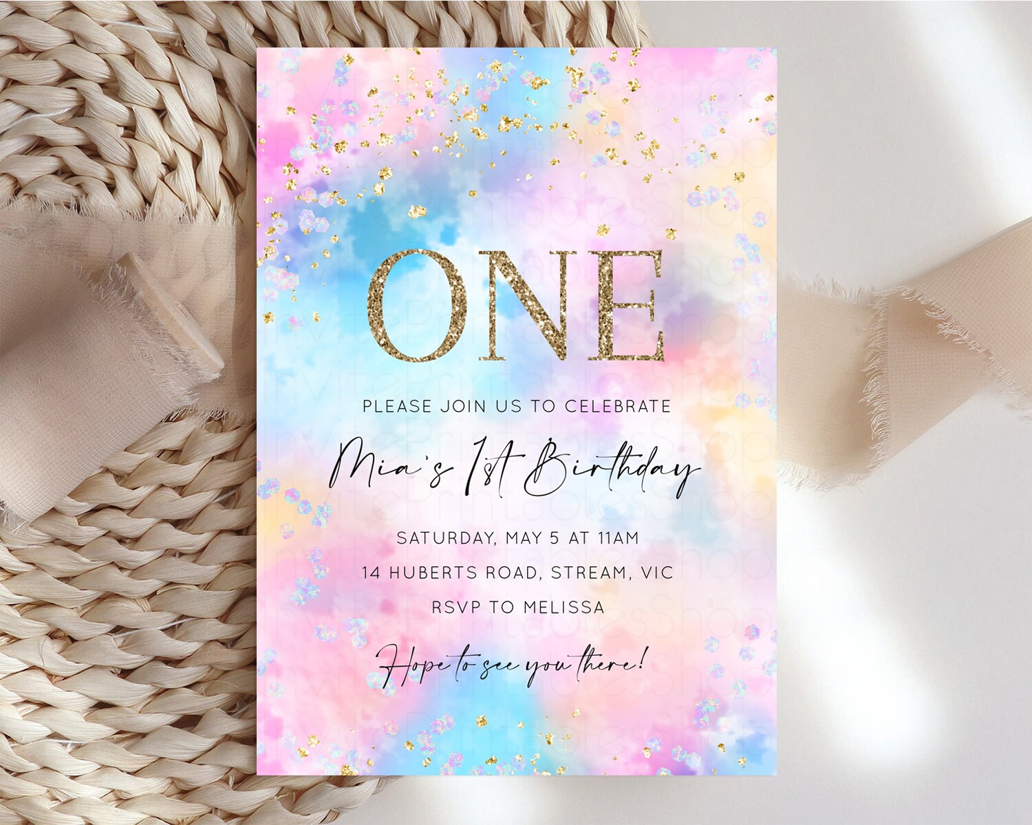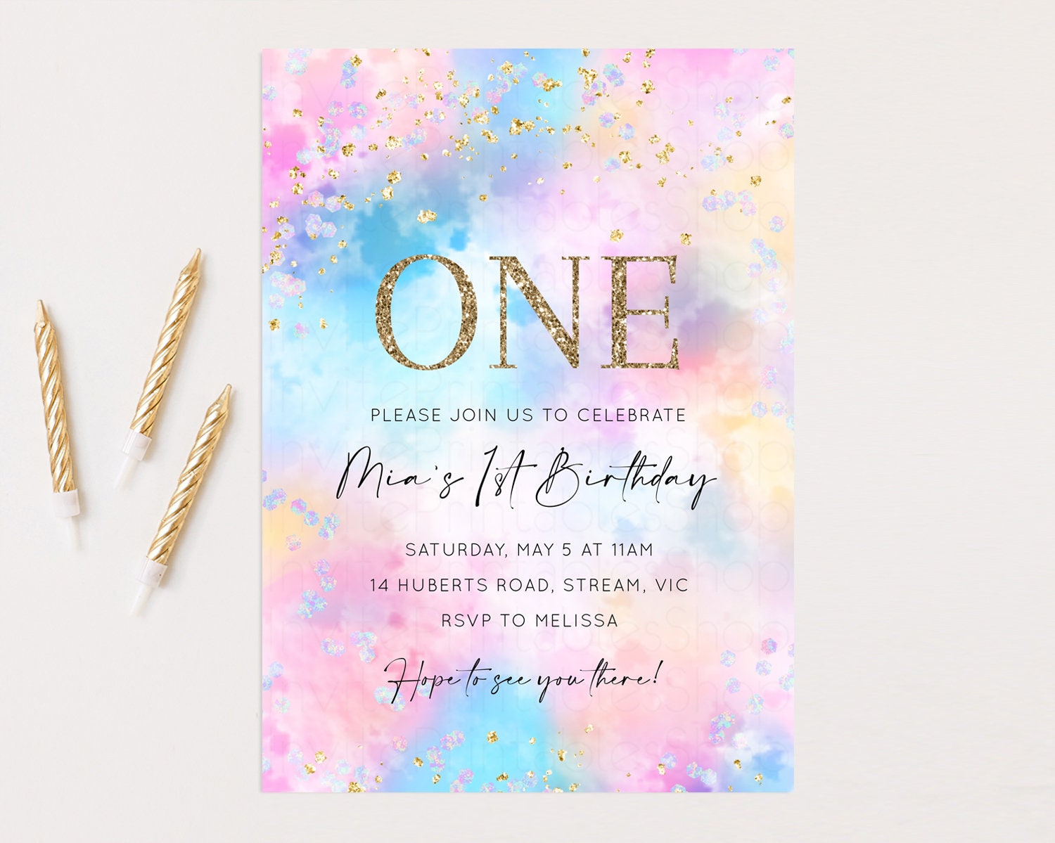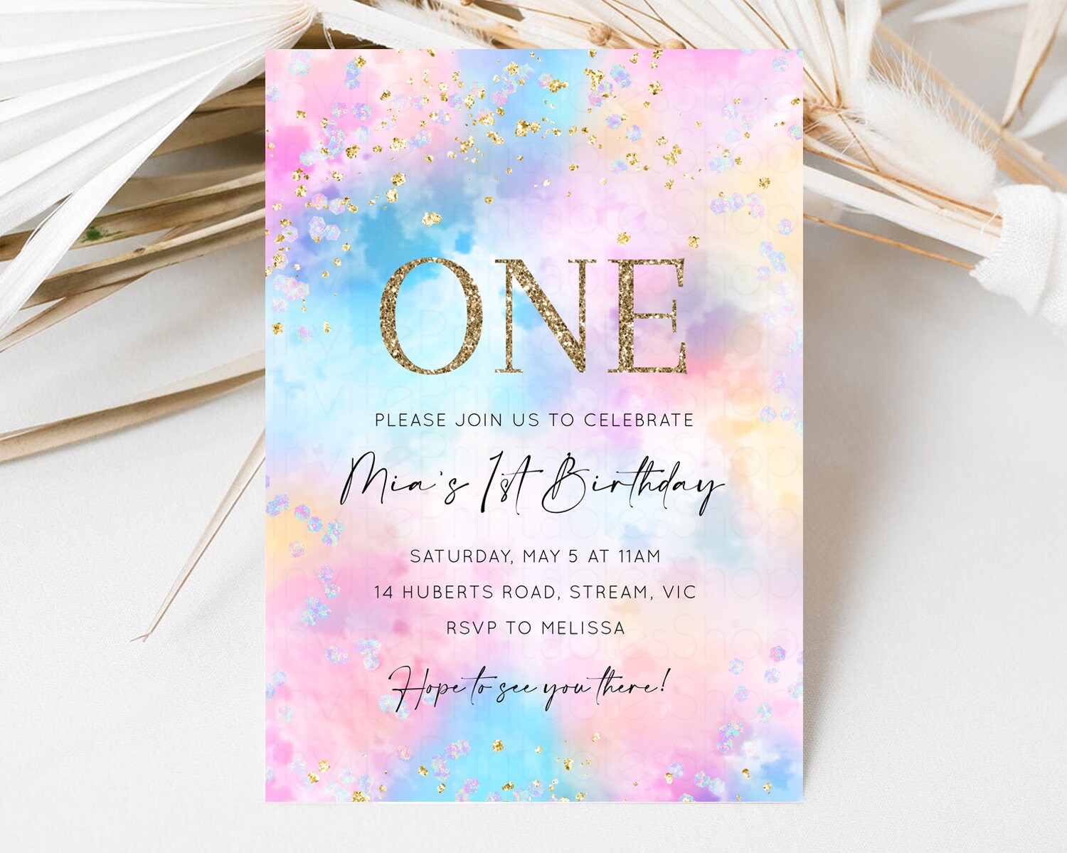 Rainbow Birthday Invitation Pastel Birthday Invitation Ombre Rainbow Invite Colorful Watercolor Invite Glitter Cloud Sprinkle Invite 589v4