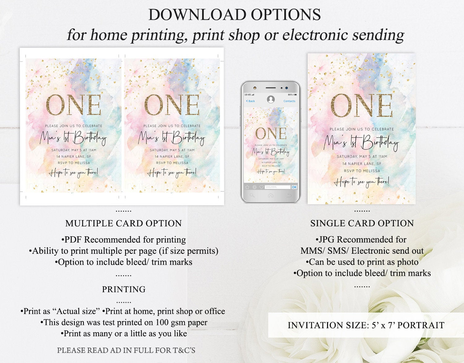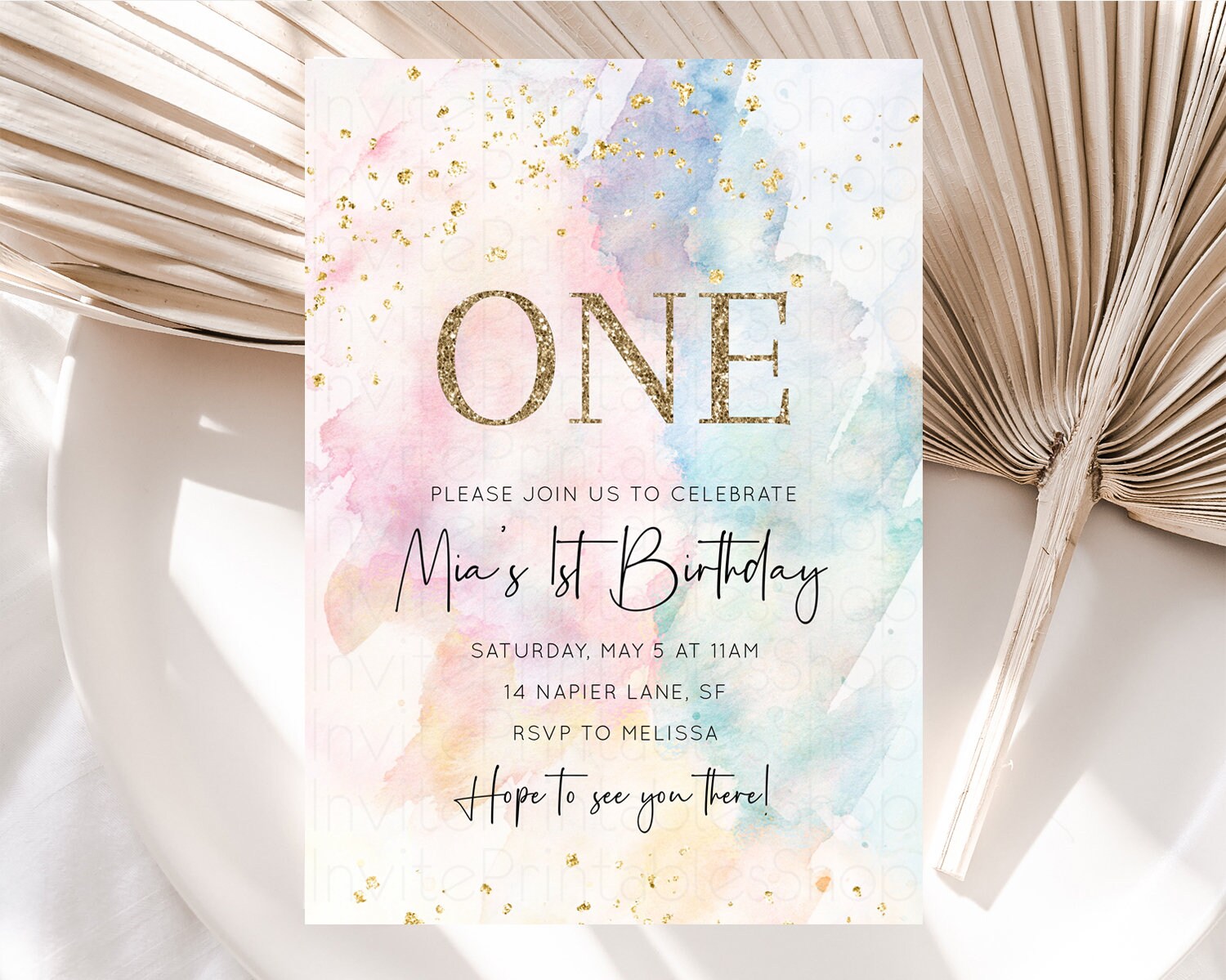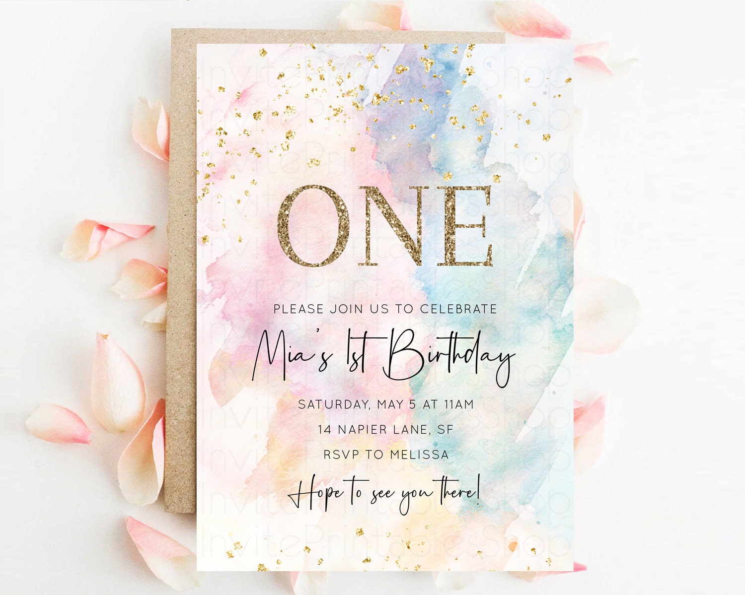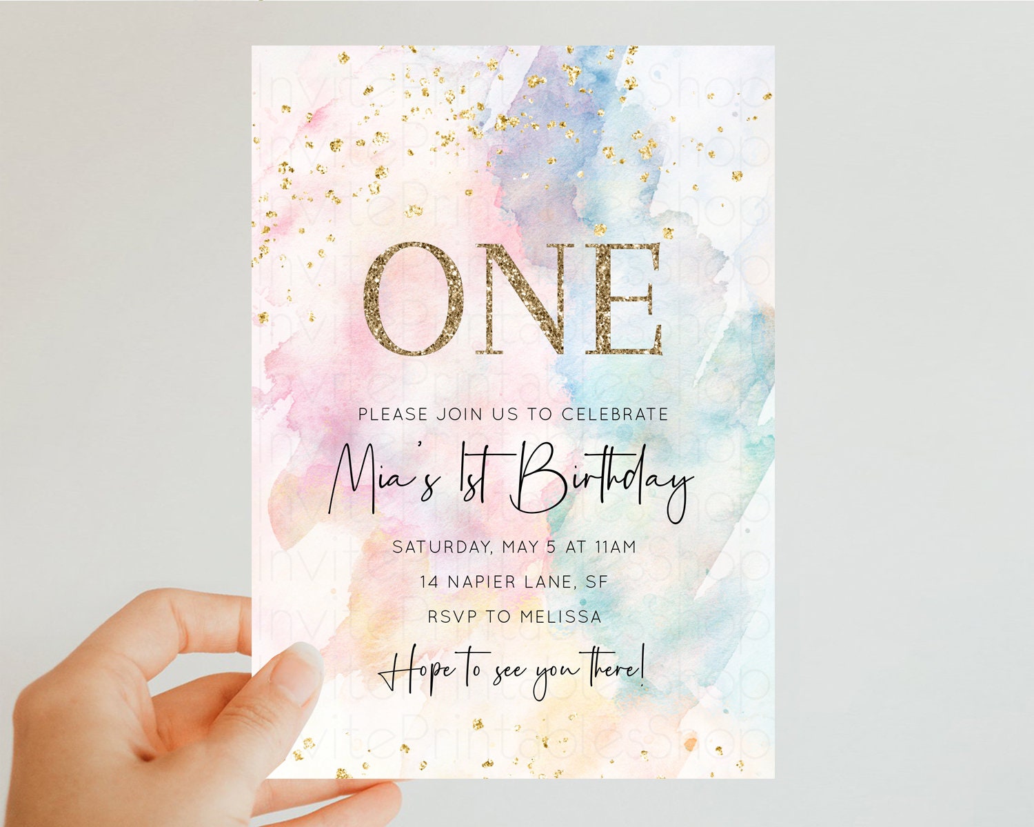Rainbow Birthday Invitation Pastel Birthday Invitation Ombre Rainbow Invite Colorful Watercolor Invite Glitter Sprinkle 1st 2nd 3rd 276v2