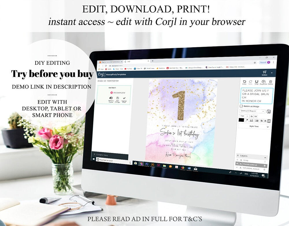 •Try before you buy! • DEMO LINK- https://www.corjl.com/d/3J707C PLEASE READ AD IN FULL!! •Digital file. No physical item will be shipped •Do it yourself Editing. Edit online with Corjl or Edit with your mobile ITEM DETAILS Invitation size: 5’x7’ File type: PDF, JPEG Resolution: 300DPI PDF FILE OPTIONS: •Recommended for printing •Ability to print multiple per page (if size permits) •Option to include bleed/ trim marks JPG FILE OPTIONS: •Recommended for MMS/ SMS/ Electronic send out •Can be used to print as photo •Option to include bleed/ trim marks EDITING • Do it yourself editing • Mobile editing is available • Google chrome is the recommend browser for Corjl. Please download here for FREE: https://www.google.com/chrome/ • Using other browsers may not show all of Corjl's editing features • Editing on a desktop/ laptop computer is recommended to access all of Corjl features • Mobile editing is available, please use a desktop/ laptop computer to access all of Corjl features DOWNLOADS & EXPIRY •Maximum 3 downloads on the same edit •Link expires 30 days after purchase DOWNLOAD NOTICE •Once you have reached your download limits &/ “approve proof” in Corjl. You will not be able to request further downloads on your design. Further download requests are not permitted WHAT IS EDITABLE •Text - colours, fonts, size, move, delete & rotation. •Please see demo link for what you can and can’t do WHAT YOU CAN’T EDIT •Template size •Template orientation •Graphics CAN NOT BE deleted, moved, or changed in colour •Please see demo link for what you can and can’t do HOW TO 1. Choose design template & checkout on Etsy. 2. Email will be sent from Corjl. Follow link to access template 3. Edit, save & print INSTRUCTIONS •Instructions on how to edit your design have been written by Corjl and will be available with your purchase. PRINTING •Colours can vary depending on the monitor, printer & cardstock •Can be printed at home •Home printing will require you to select the high quality print settings, select appropriate paper thickness & click "Actual size" prior to you printing •This design was test printed on 100 gsm paper •Can be printed at local print shop. Please check printing requirements & any printing restrictions prior to purchase PERSONAL USE ONLY. This item cannot be shared, re-sold, or used commercially for profit. REFUND POLICY •We are unable to provide a refund/ exchange on commenced & completed work, instant downloads or self-editing link templates. Please use the demo link to work out if this product is right for you. Copyright © 2018 by InvitePrintablesShop PTY LTD All rights reserved. This file or any portion thereof may not be reproduced or resold without the express written permission of the publisher (including edits to the design). Our files are provided as high-resolution PDFs – the end result is dependent upon the printer and paper used. If using a professional printing company, InvitePrintablesShop are not responsible for their specific printing requirements, paper or colour quality. Any changes required to the template are not included with your purchase – the files come as described in the listing only and cannot be changed. Thank you for visiting Invite Printables Shop:)