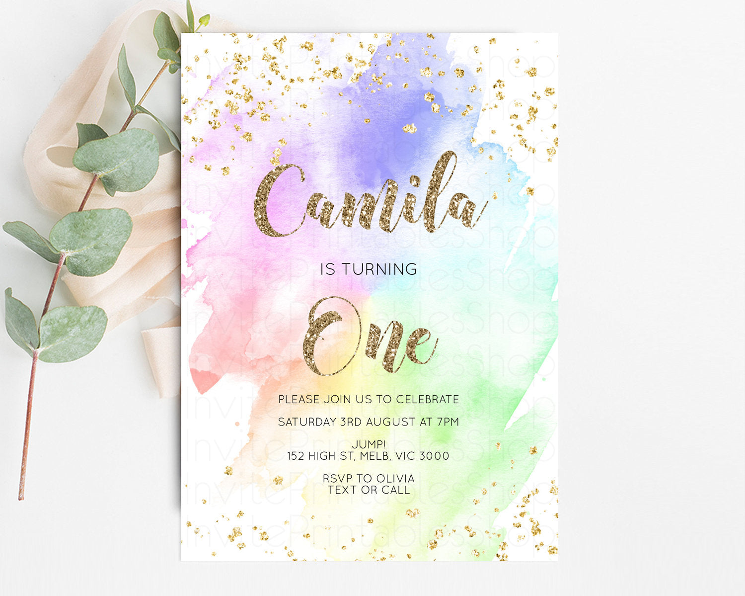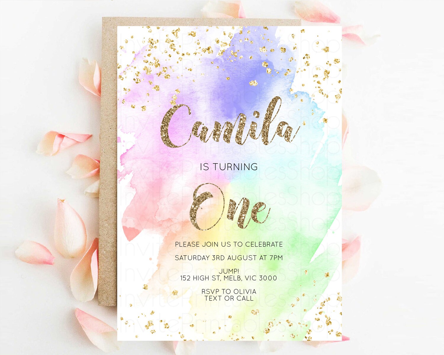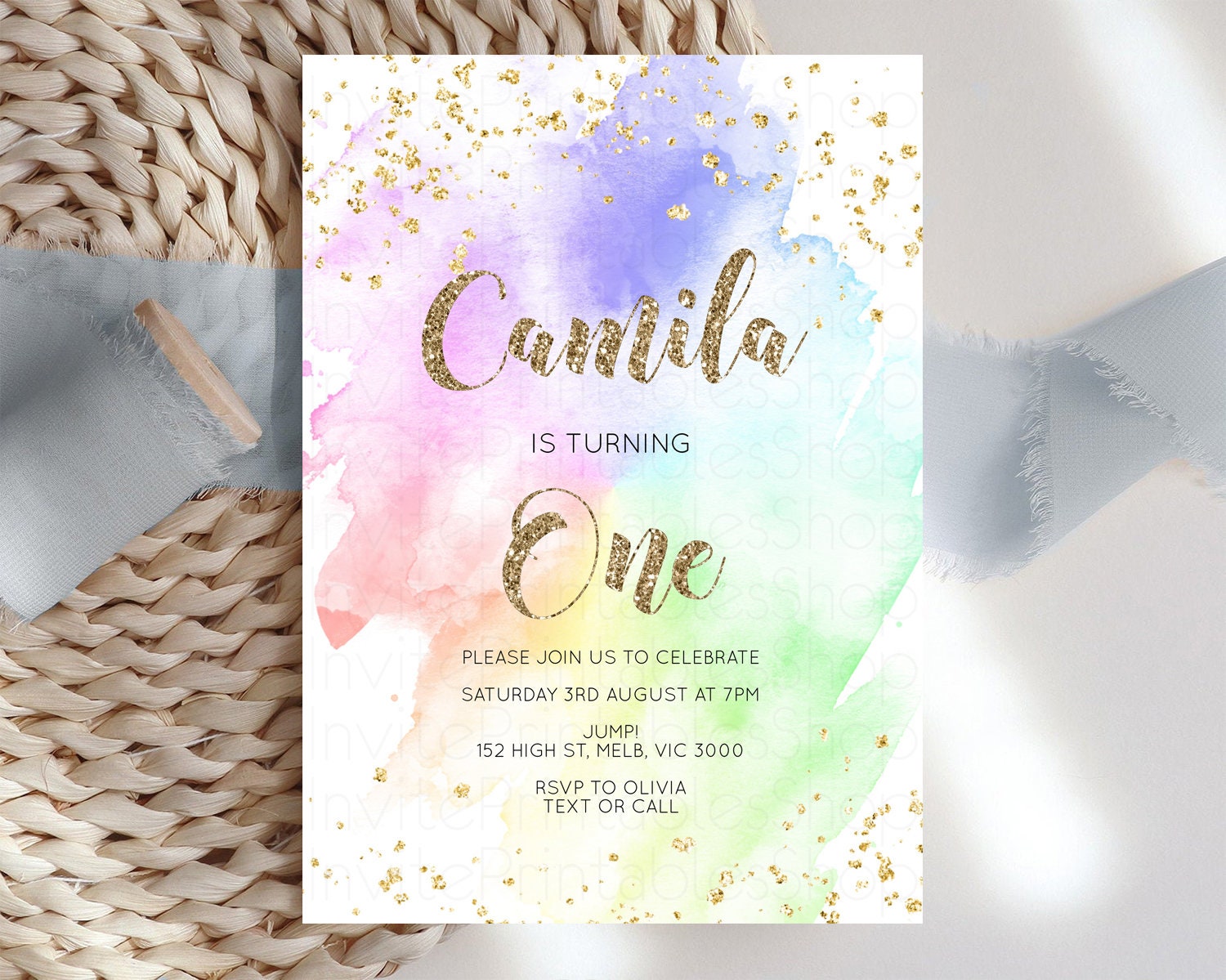 Rainbow Birthday Invitation Pastel Birthday Invitation Ombre Rainbow Invite Colorful Watercolor Invite Glitter Sprinkle Invitation G378
