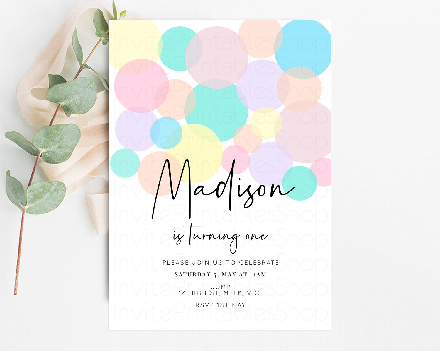 Rainbow Birthday Invitation Pastel Birthday Invitation Rainbow Confetti Invite Colorful Bubbles Invitation Rainbow Sprinkles 1st 2nd 3rd 208