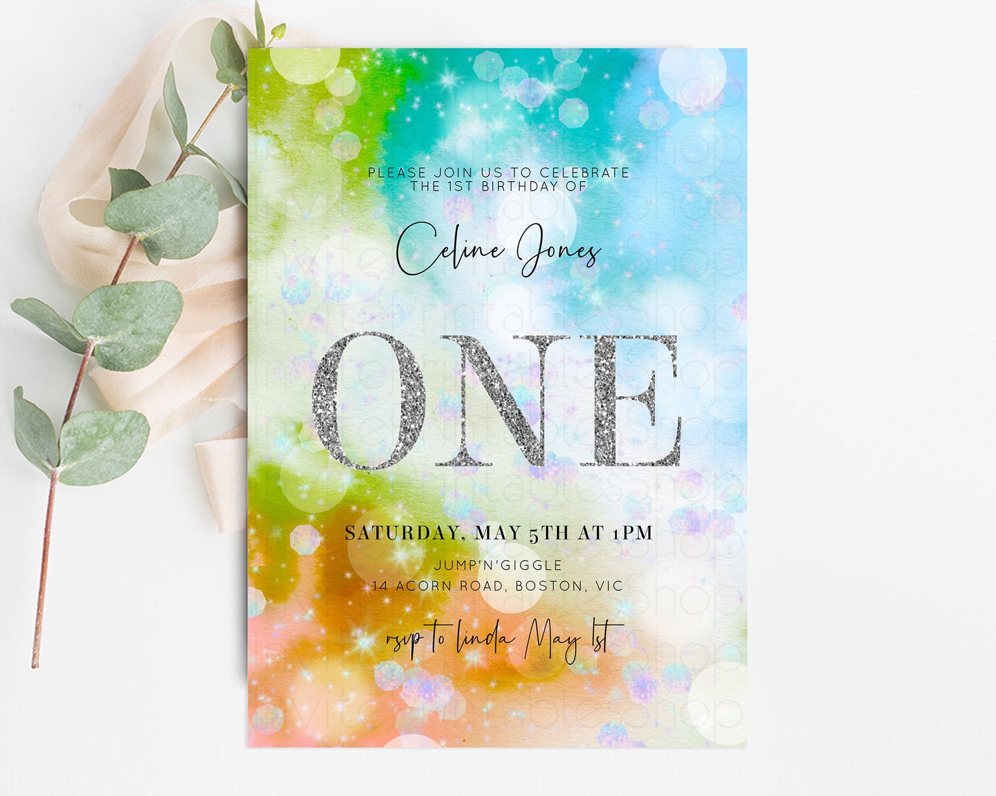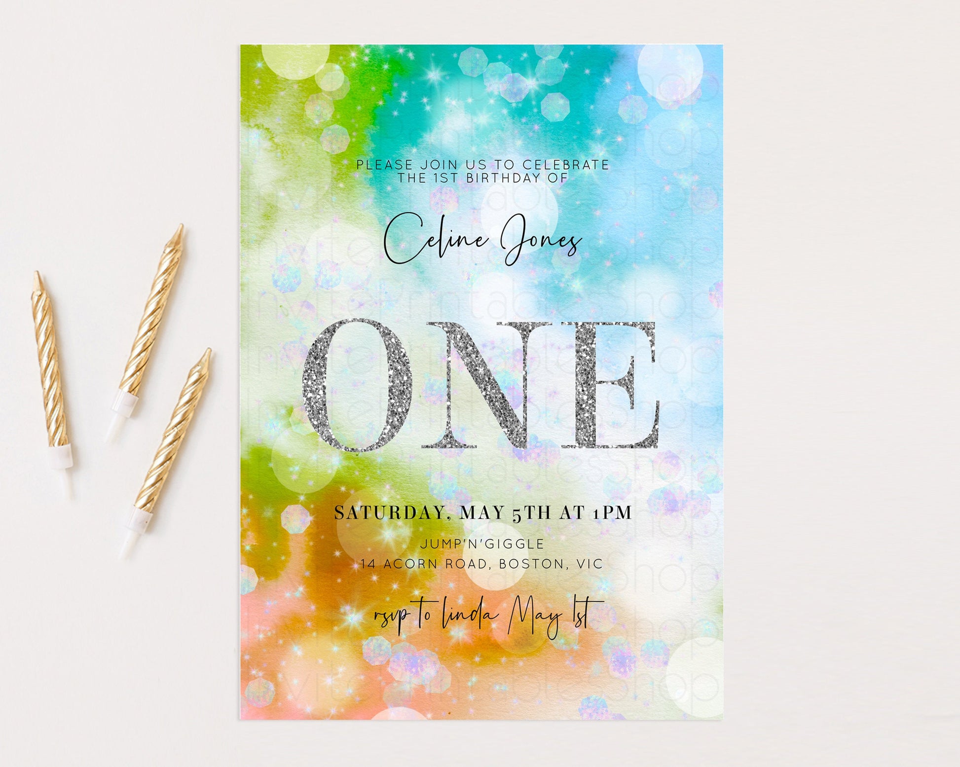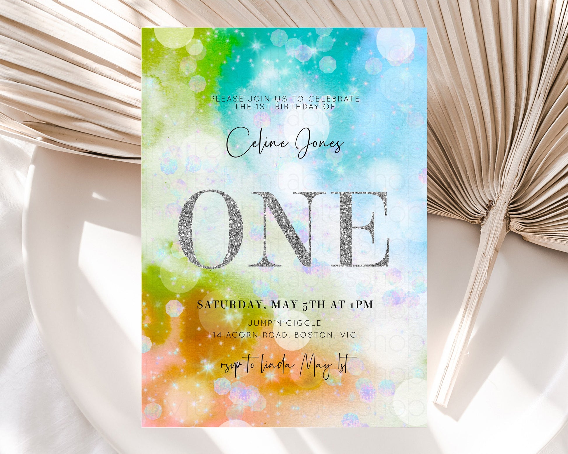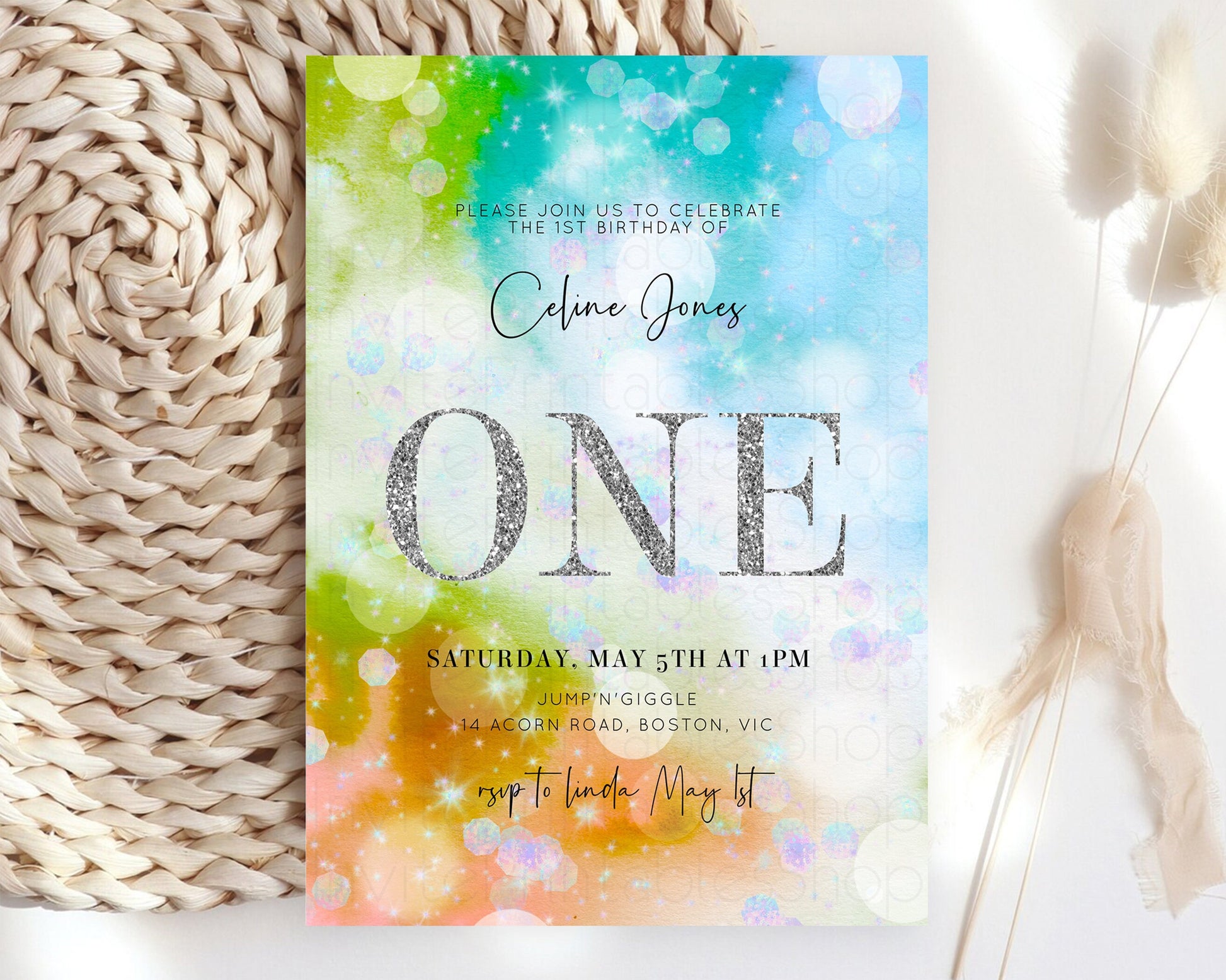 Rainbow Birthday Invitation Pastel Birthday Invite Ombre Watercolor Invite Enchanted Theme Colorful Splash Glitter Sprinkles 1st 2nd 3rd