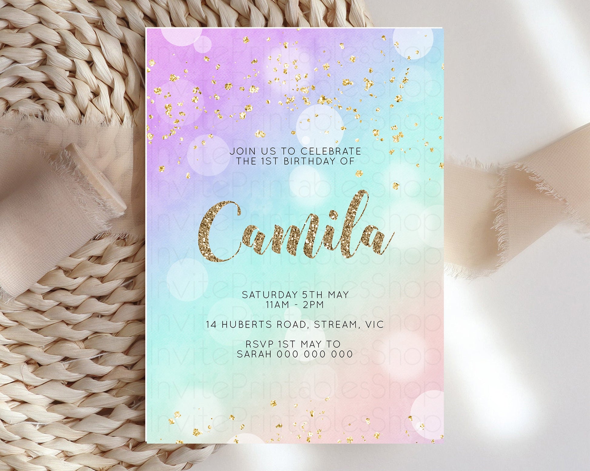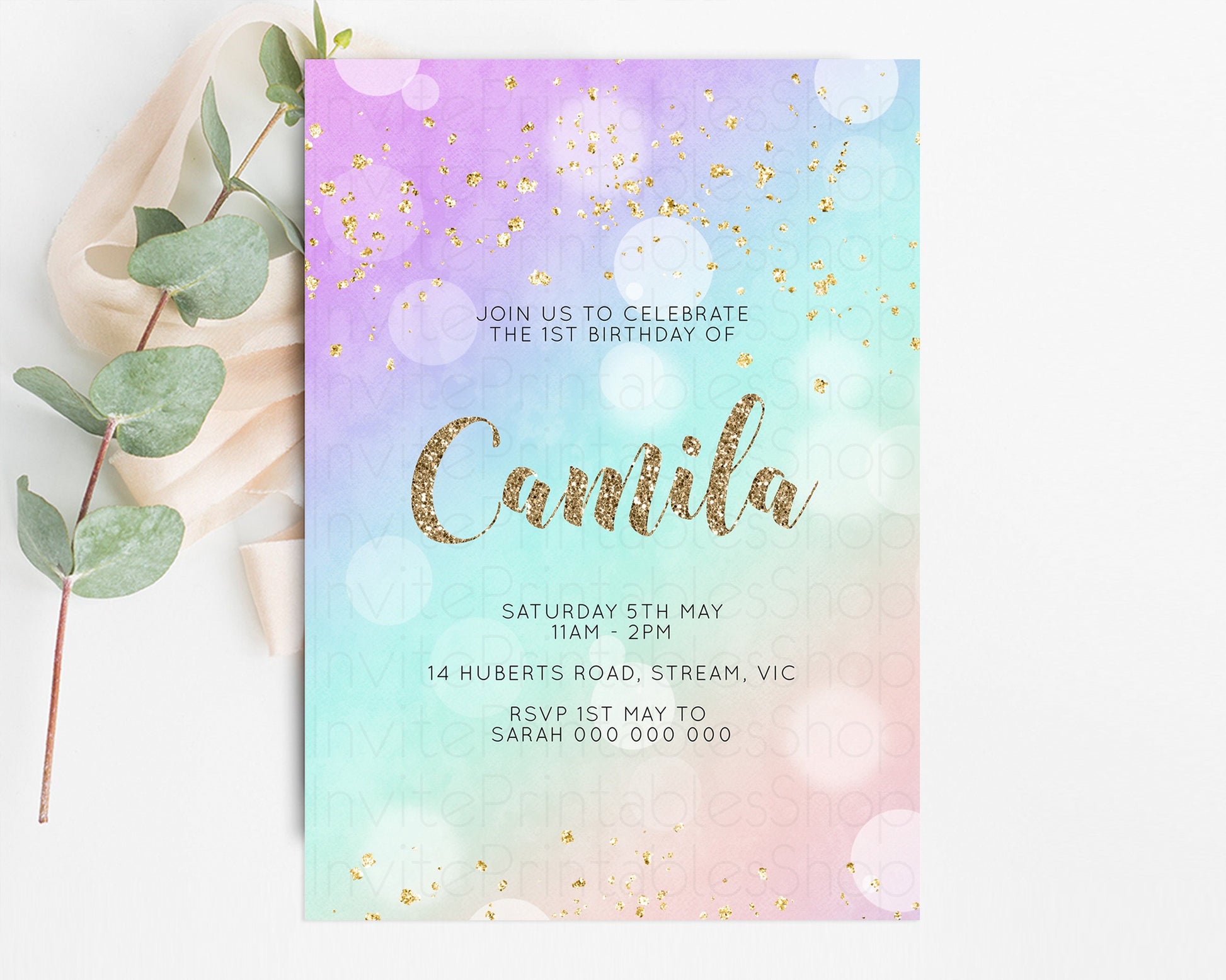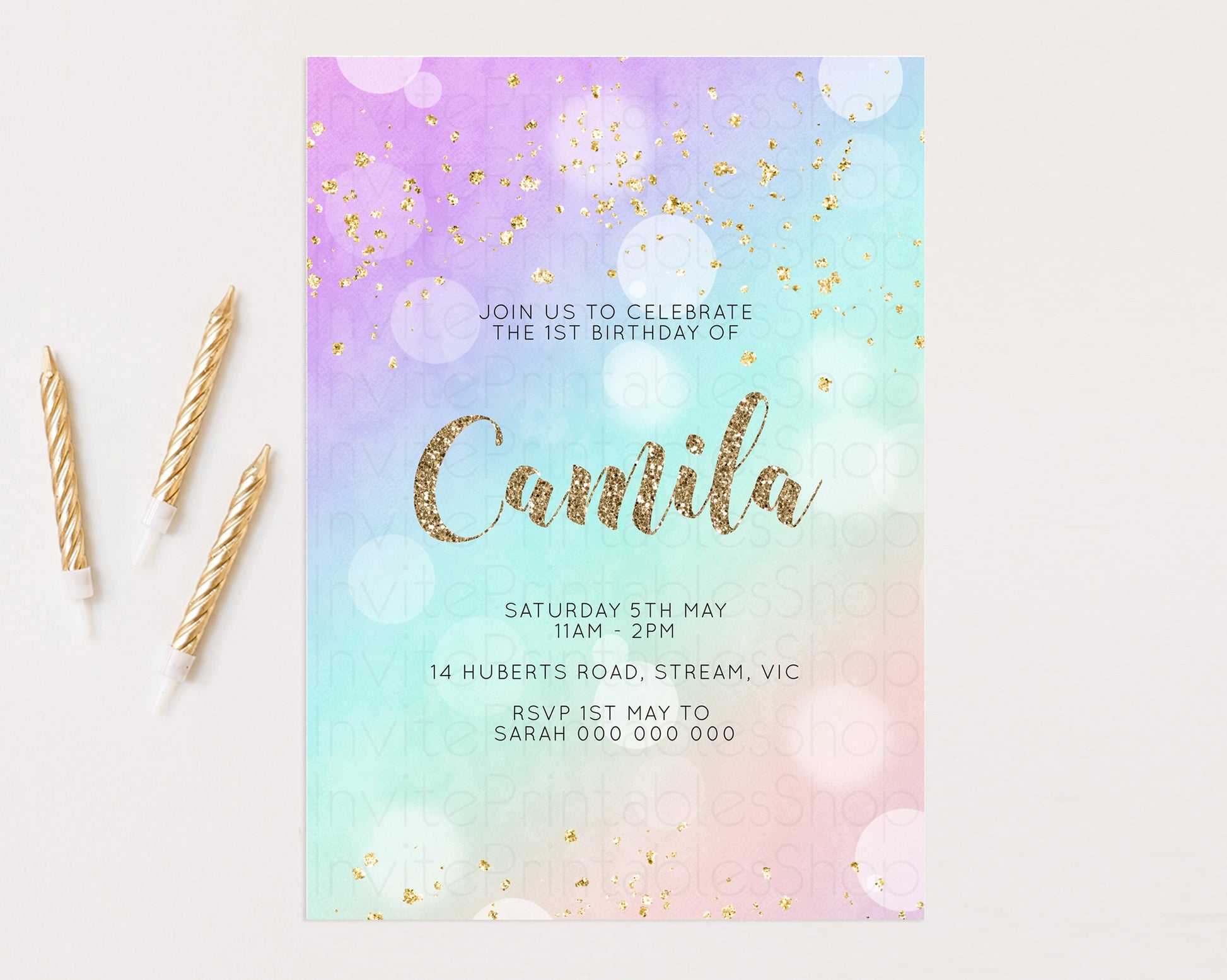Rainbow Birthday Invitation Pastel Birthday Invite Ombre Watercolor Invite Enchanted Theme Colorful Splash Glitter Sprinkles 1st 2nd 3rd