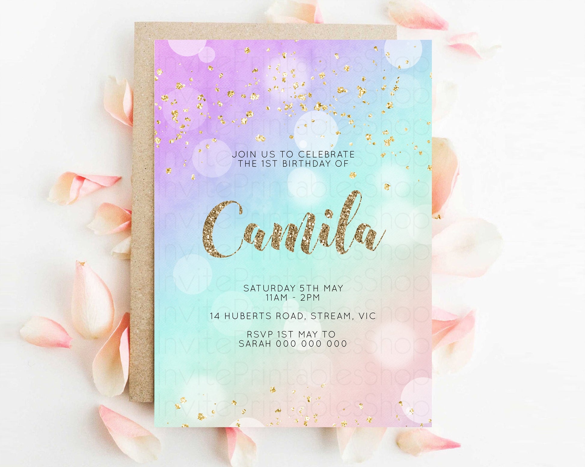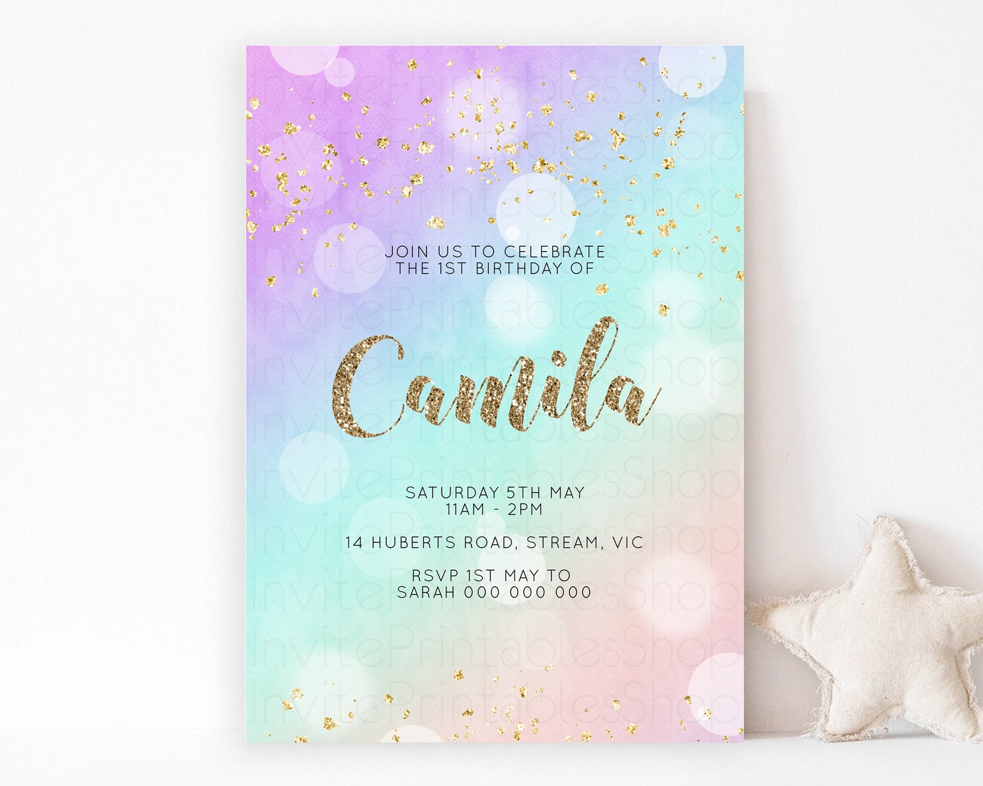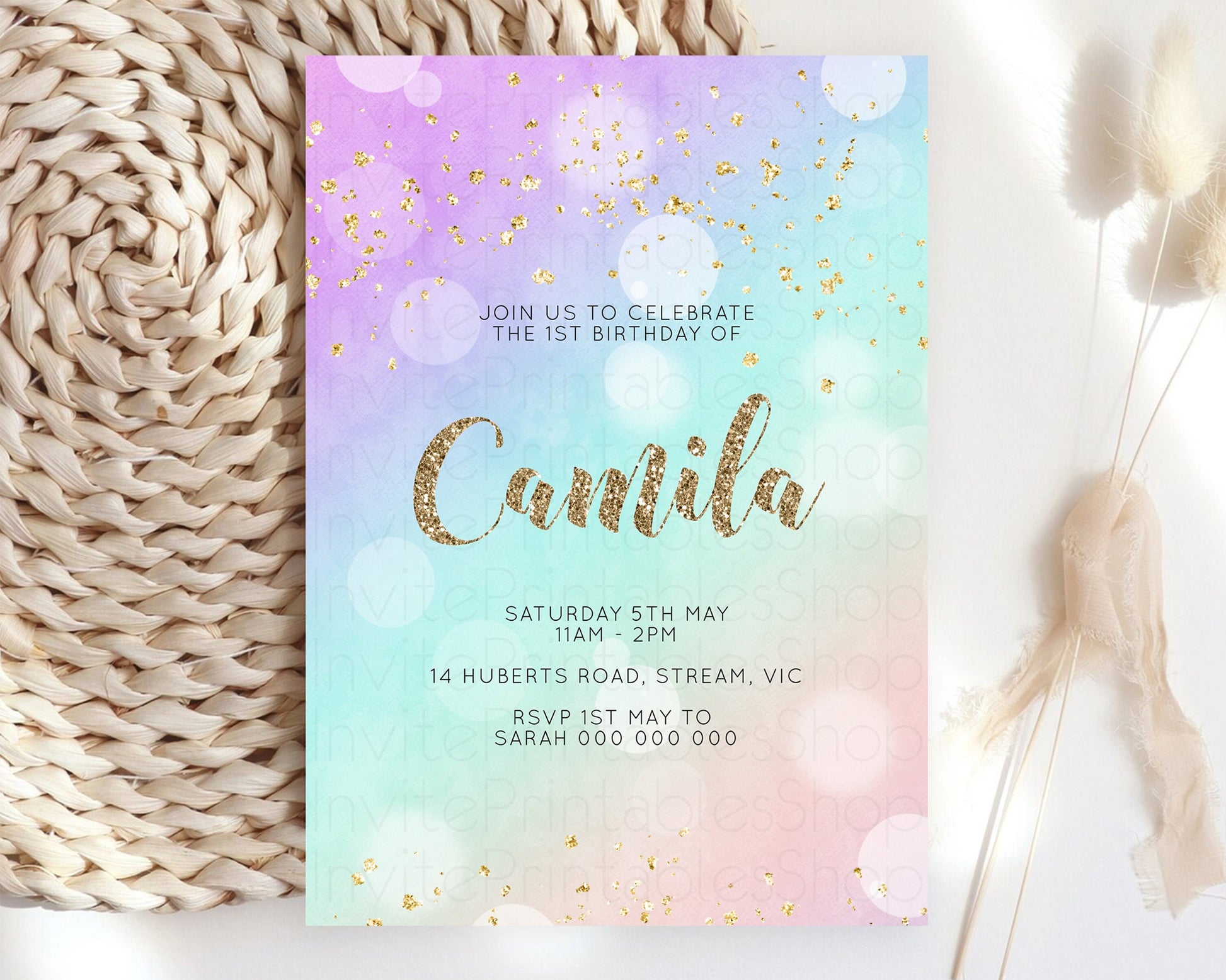 Rainbow Birthday Invitation Pastel Birthday Invite Ombre Watercolor Invite Enchanted Theme Colorful Splash Glitter Sprinkles 1st 2nd 3rd