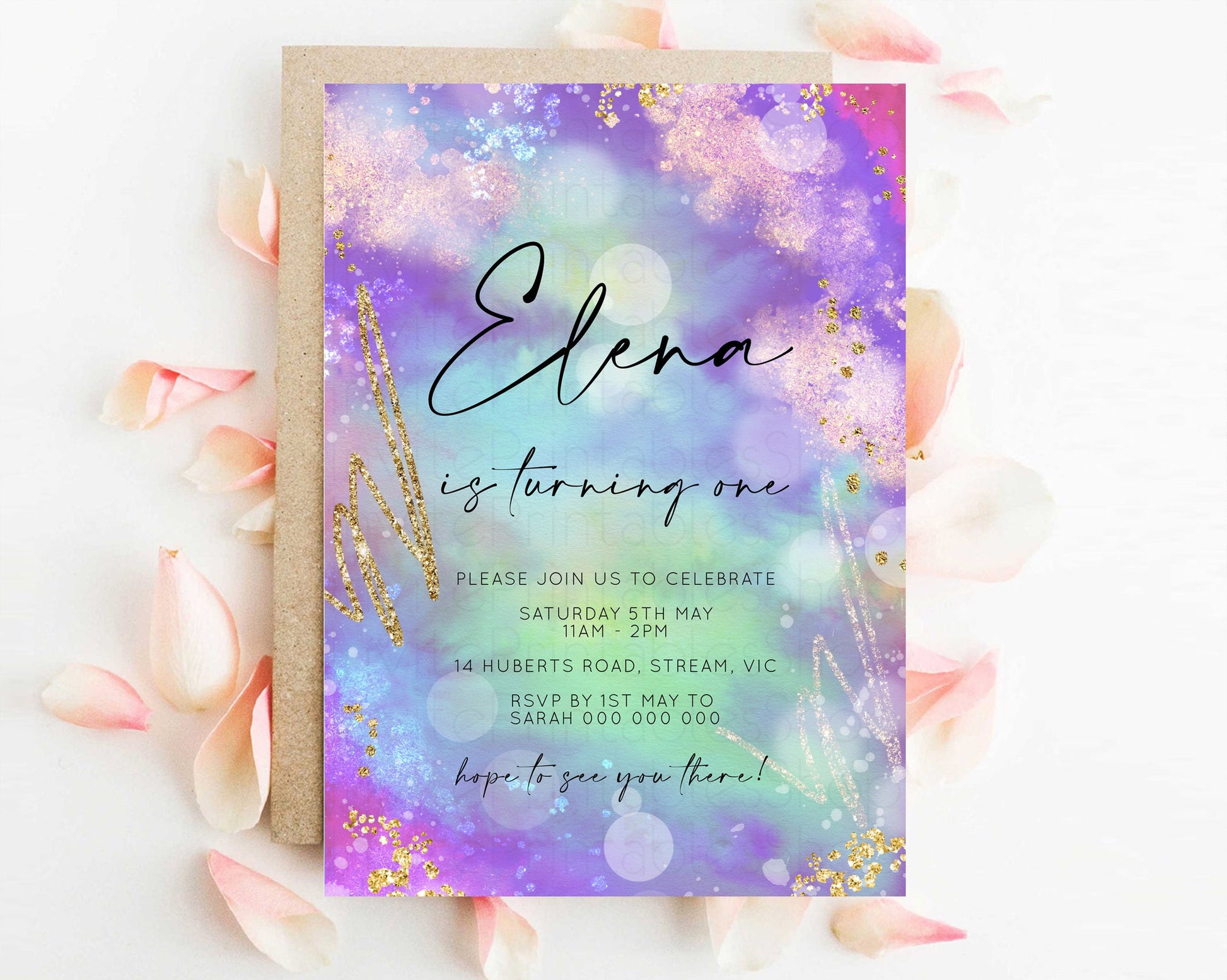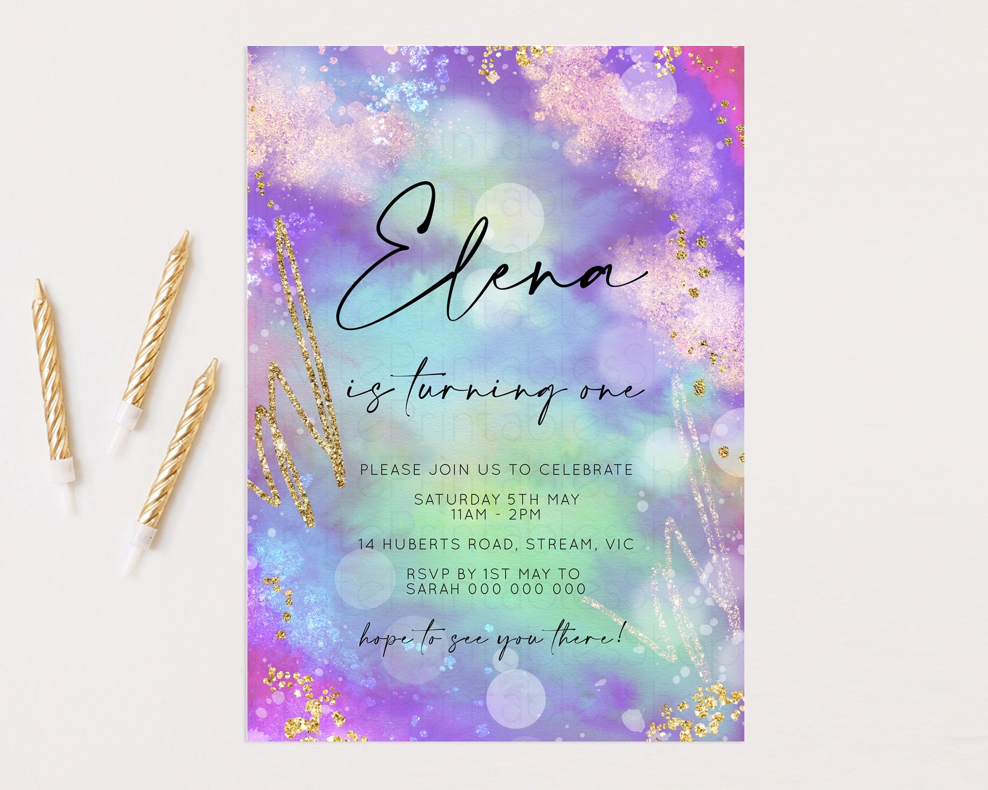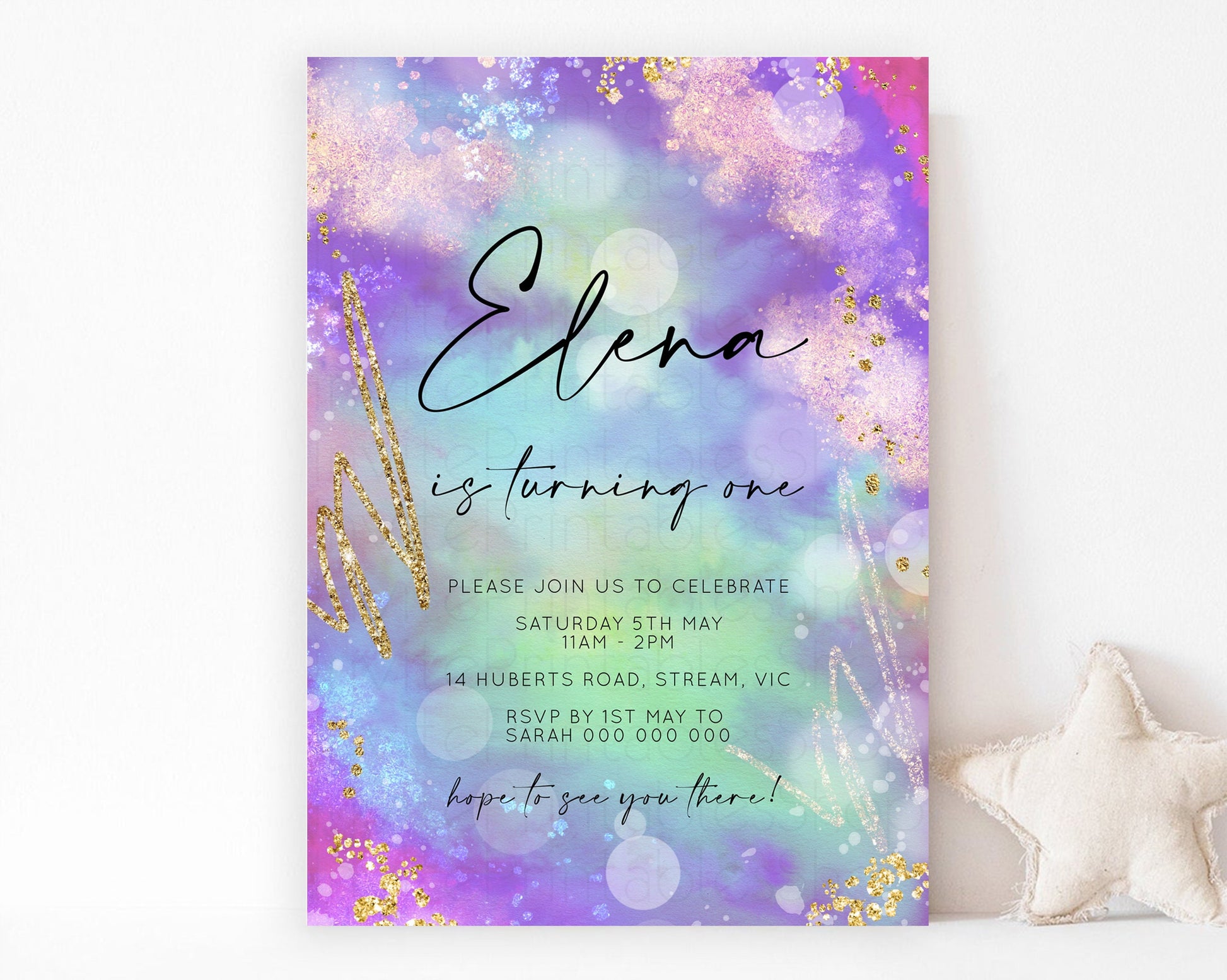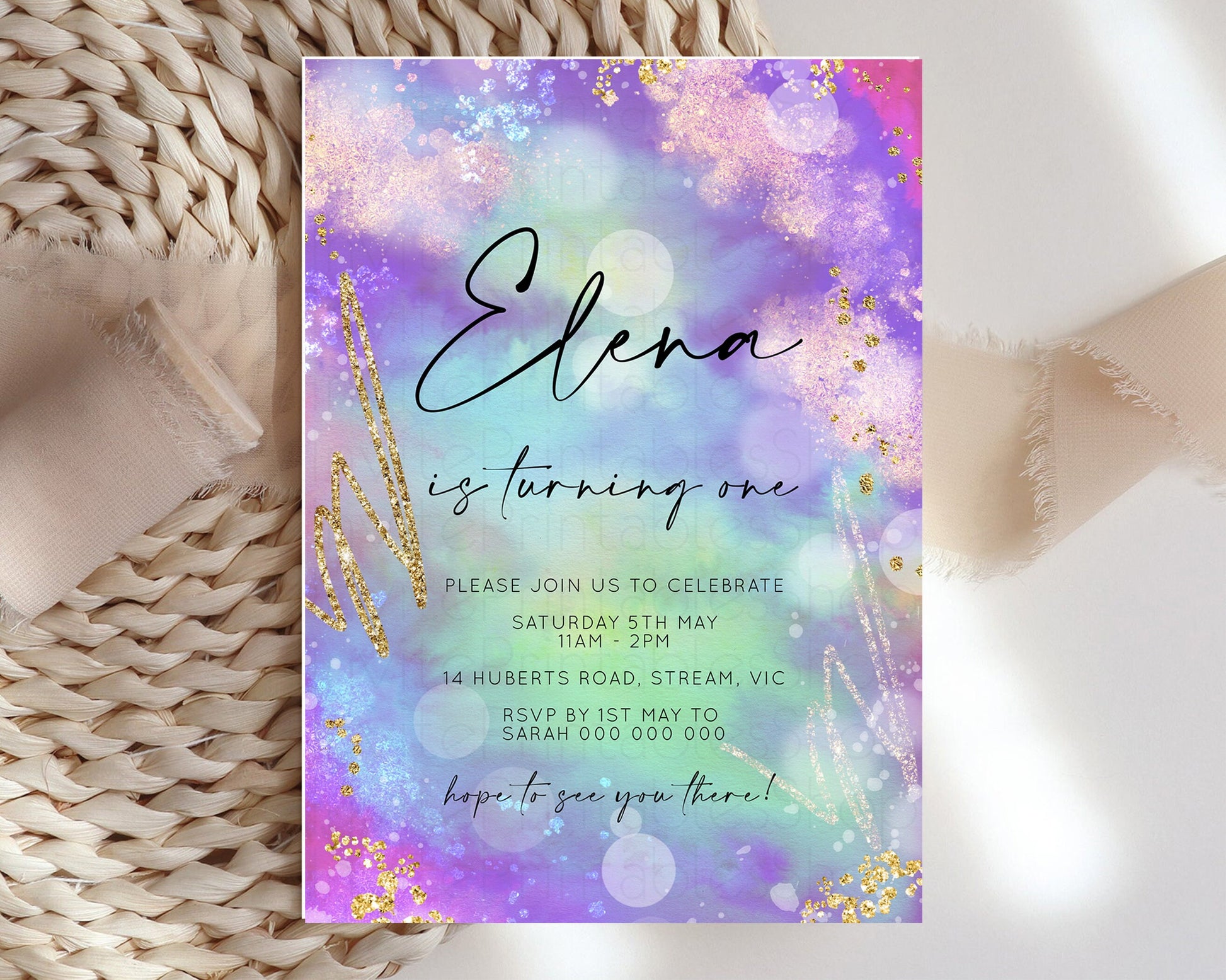 Rainbow Birthday Invitation Pastel Birthday Invite Ombre Watercolor Invite Enchanted Theme Colorful Splash Glitter Sprinkles 1st 2nd 3rd