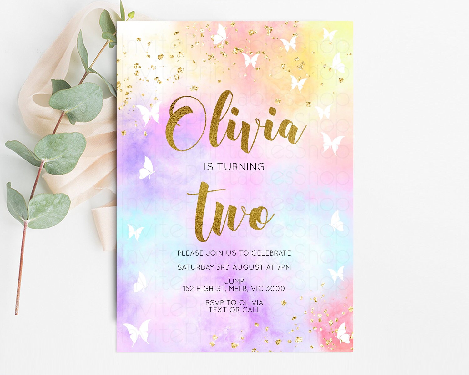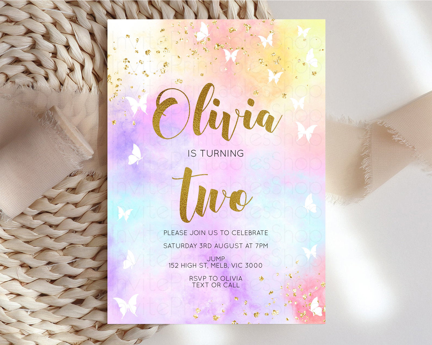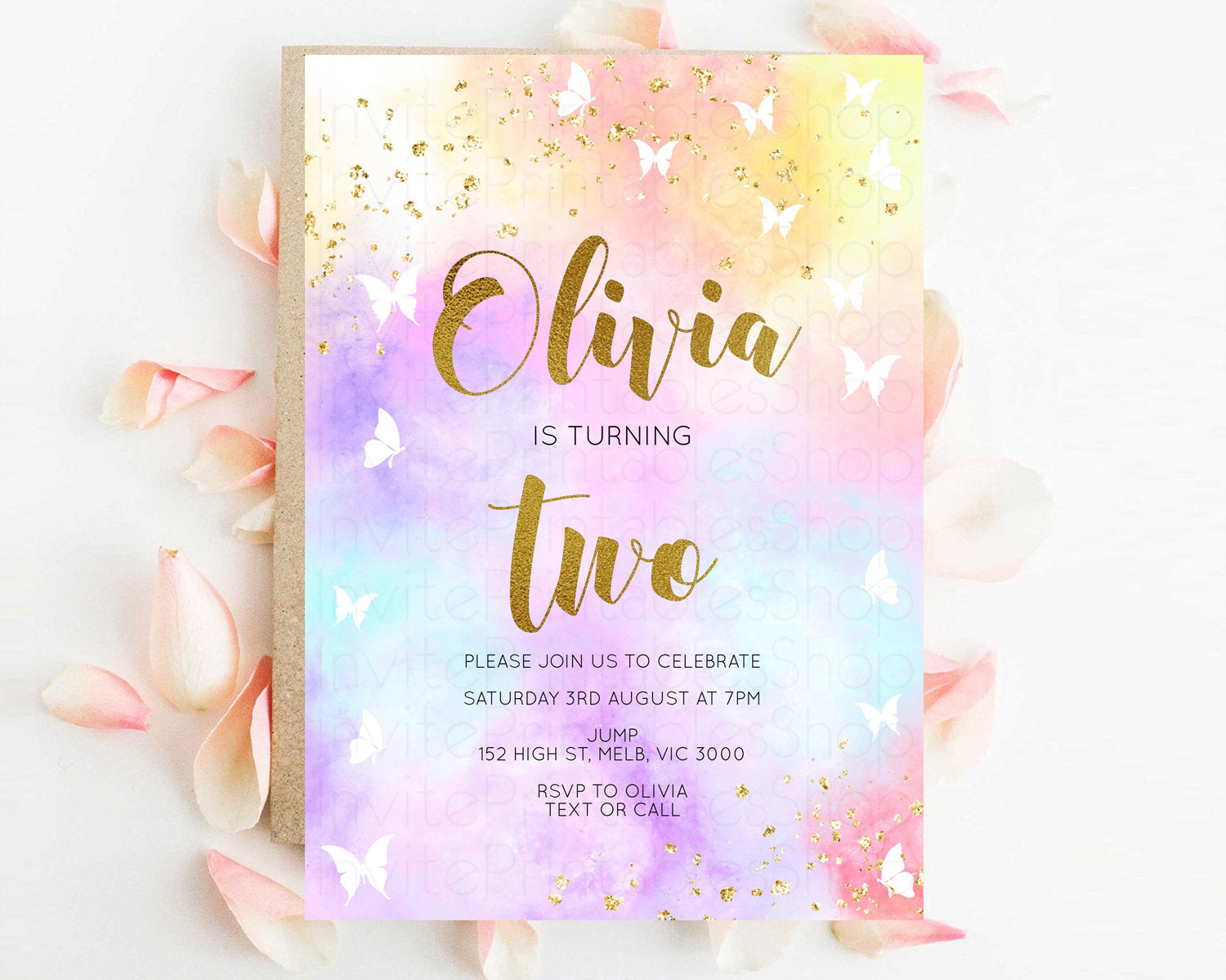 Rainbow Birthday Invitation Pastel Rainbow Birthday Invite Ombre Watercolor Invite Colorful Butterflies Glitter Sprinkles 1st 2nd 3rd 499