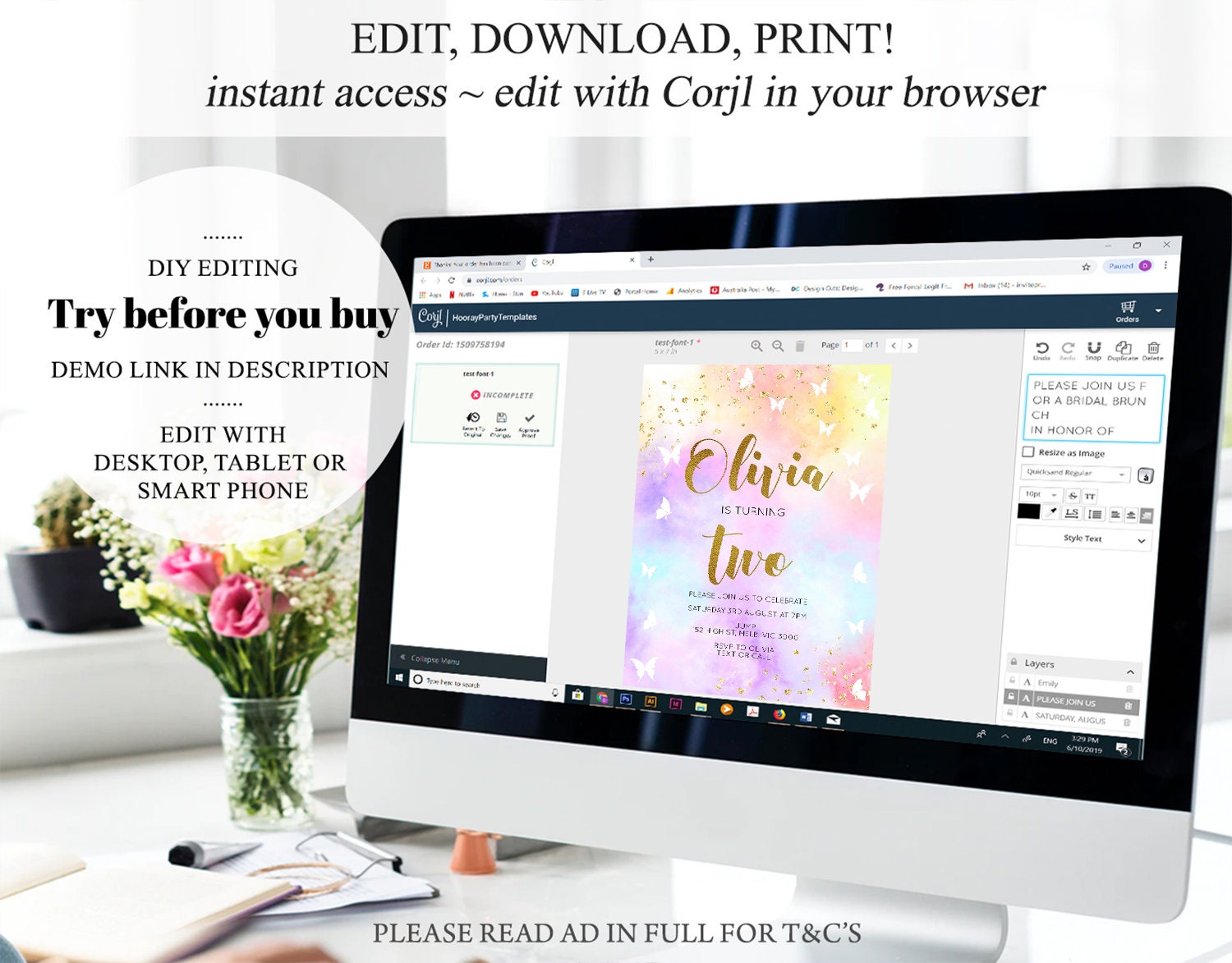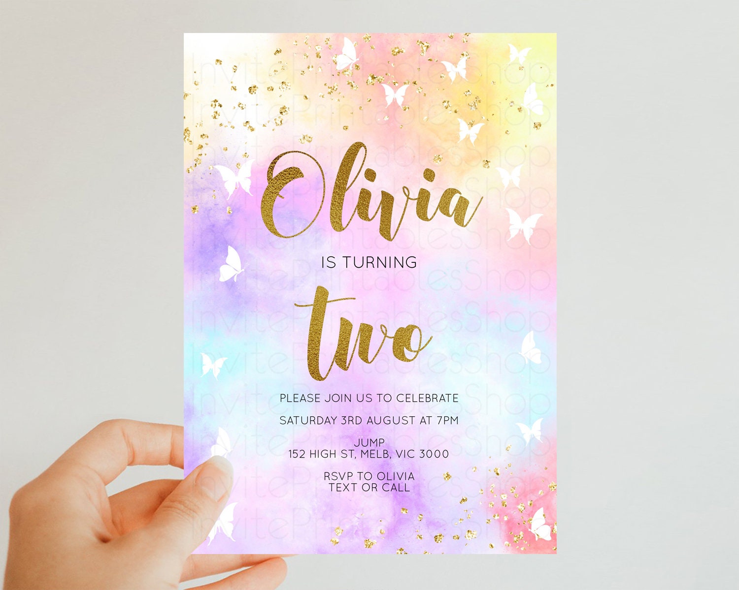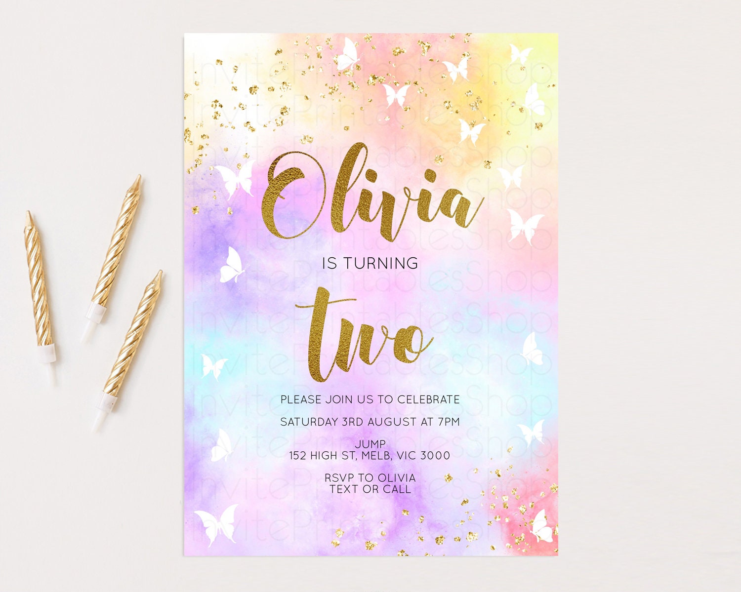 Rainbow Birthday Invitation Pastel Rainbow Birthday Invite Ombre Watercolor Invite Colorful Butterflies Glitter Sprinkles 1st 2nd 3rd 499