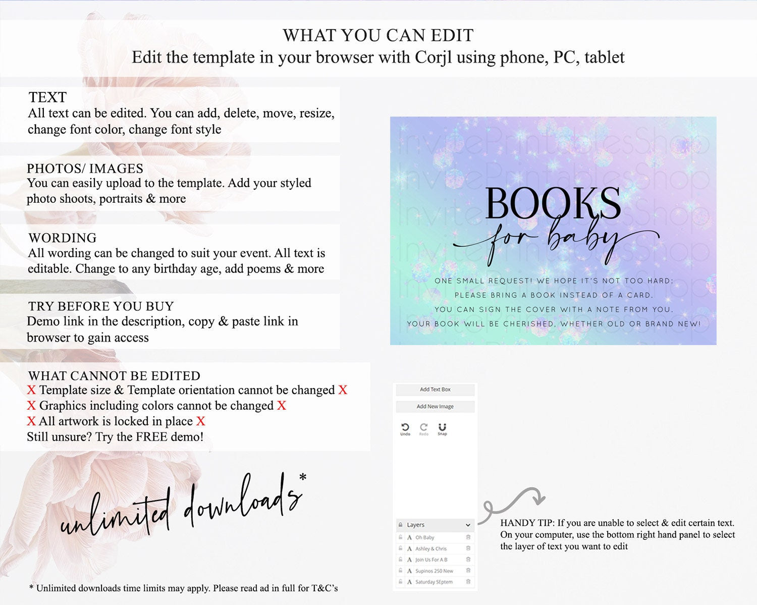 Rainbow Books For Baby Card Pastel Book Insert Colorful Pastel Watercolor Ombre Book Card Iridescent Sprinkles Book Poem Request D10663