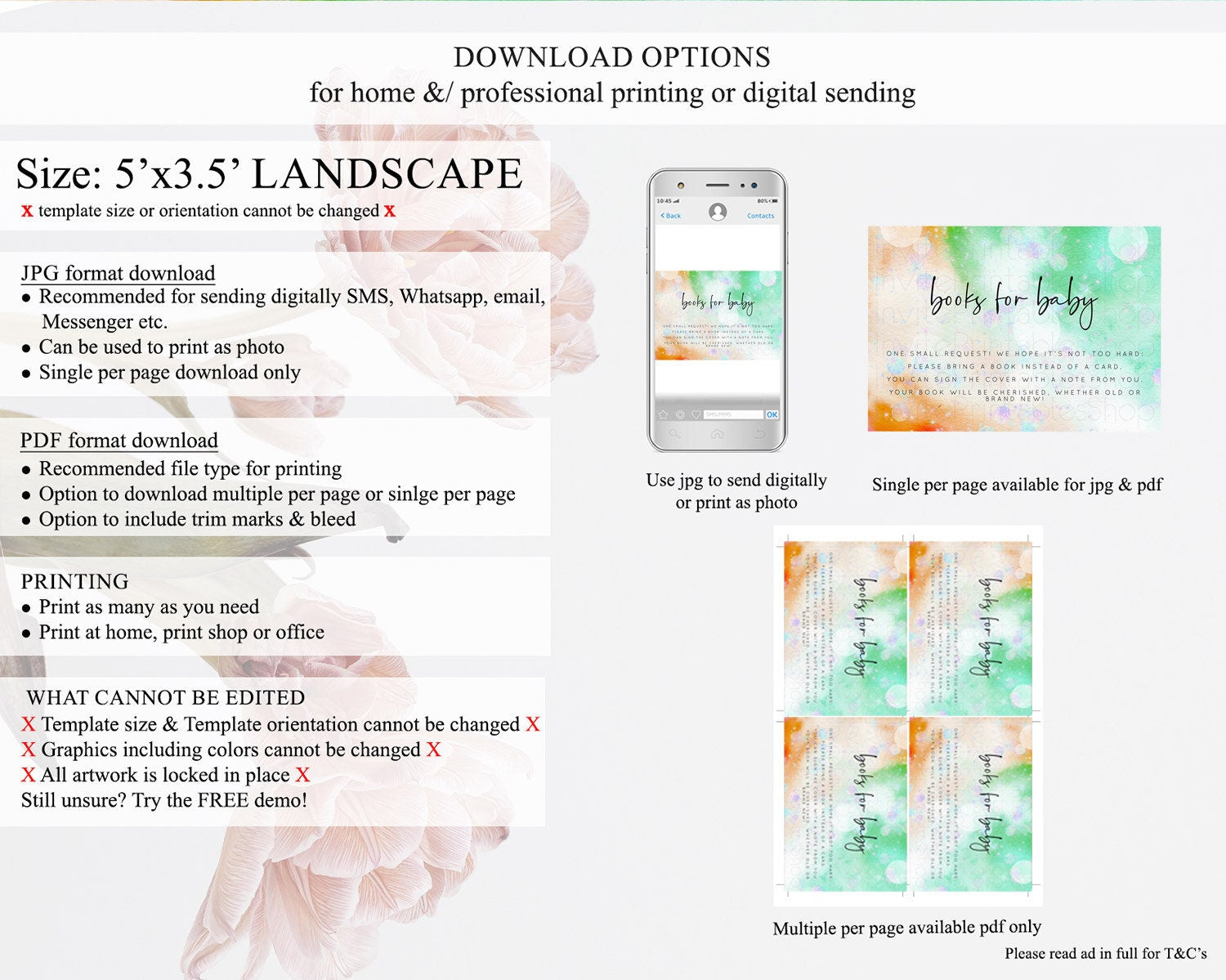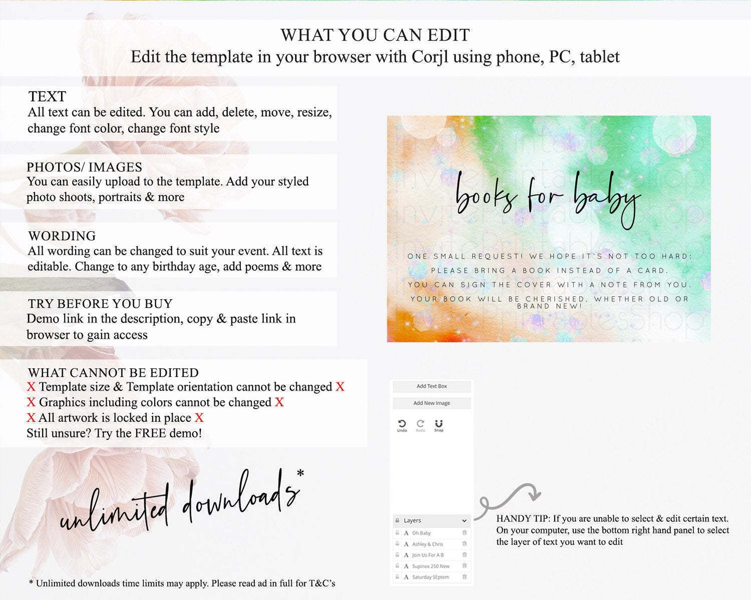 Rainbow Books For Baby Card Pastel Book Insert Colorful Pastel Watercolor Ombre Book Card Iridescent Sprinkles Book Poem Request D10691