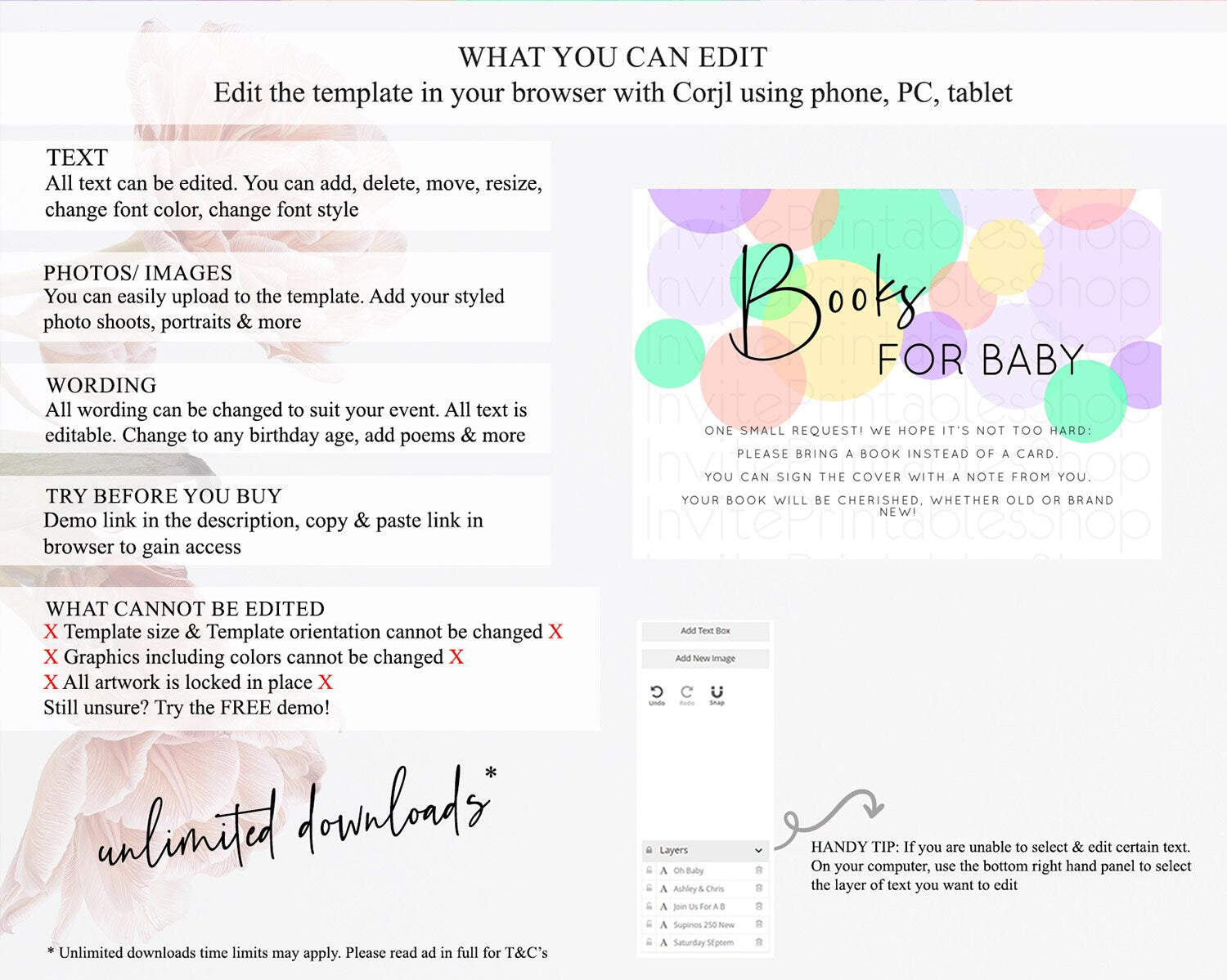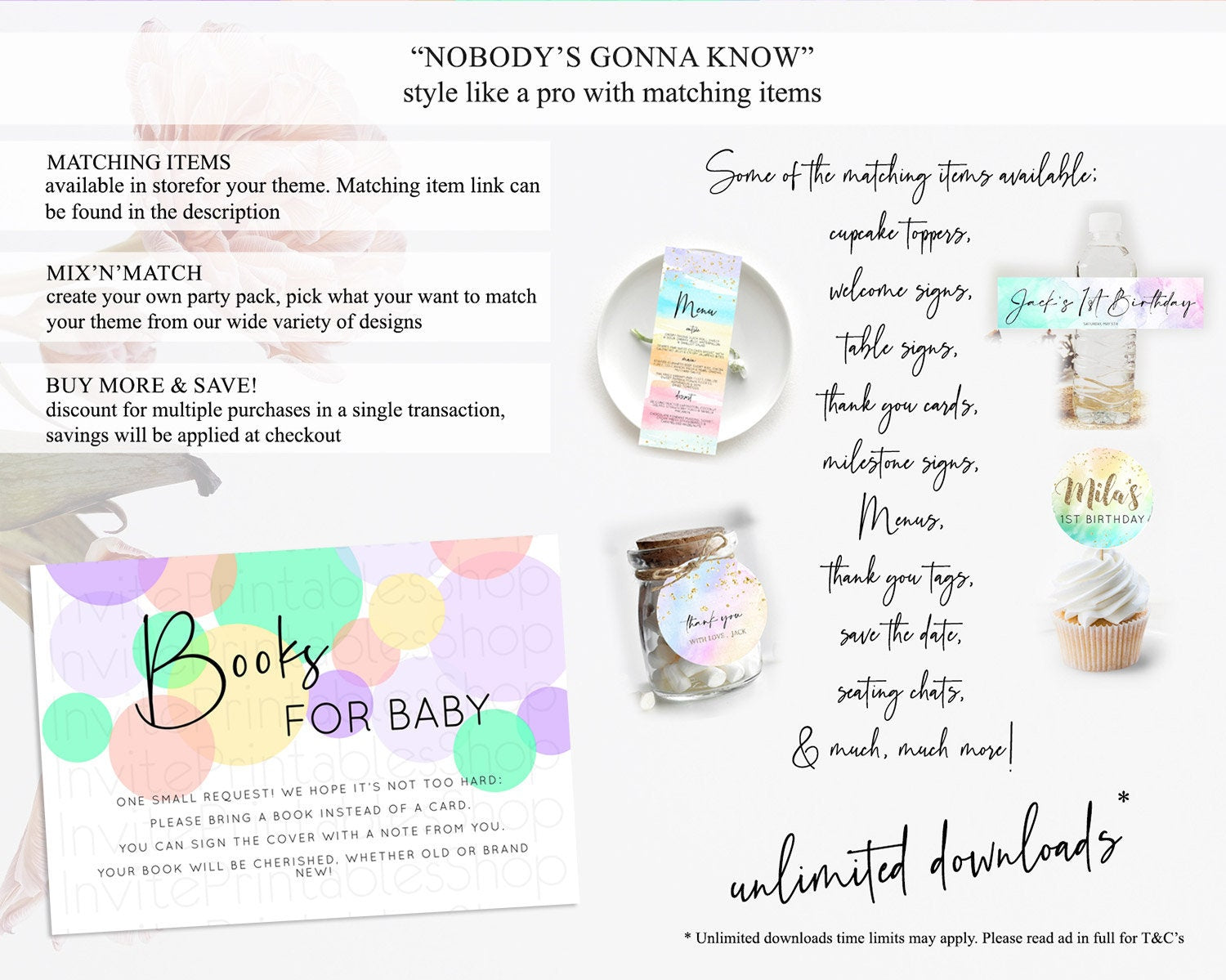 Rainbow Books For Baby Card Pastel Sprinkles Book Insert Pastel Rainbow Confetti Book Card Colorful Bubbles Pastel Book Poem Request D10380