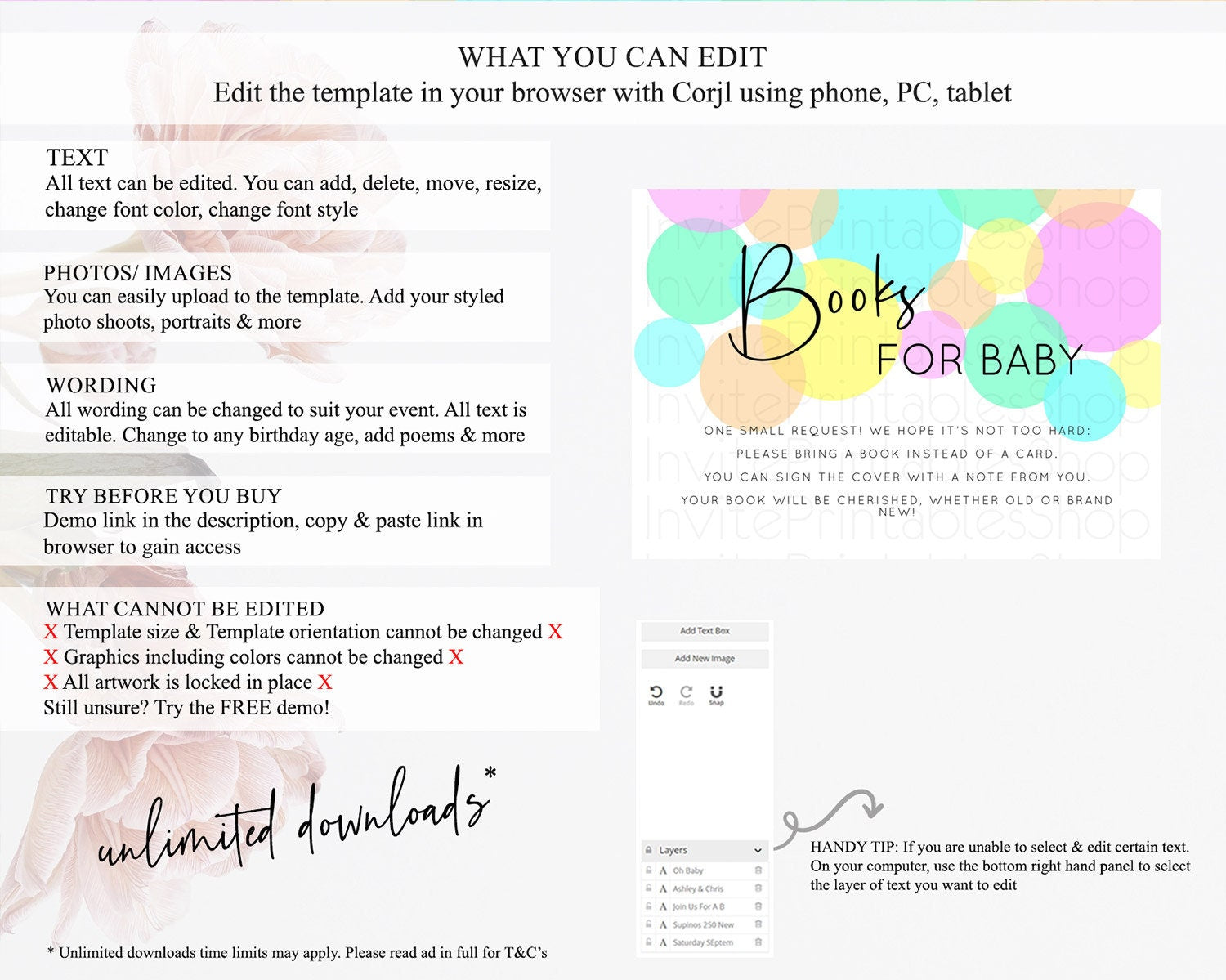 Rainbow Books For Baby Card Pastel Sprinkles Book Insert Pastel Rainbow Confetti Book Card Colorful Bubbles Pastel Book Poem Request D10409