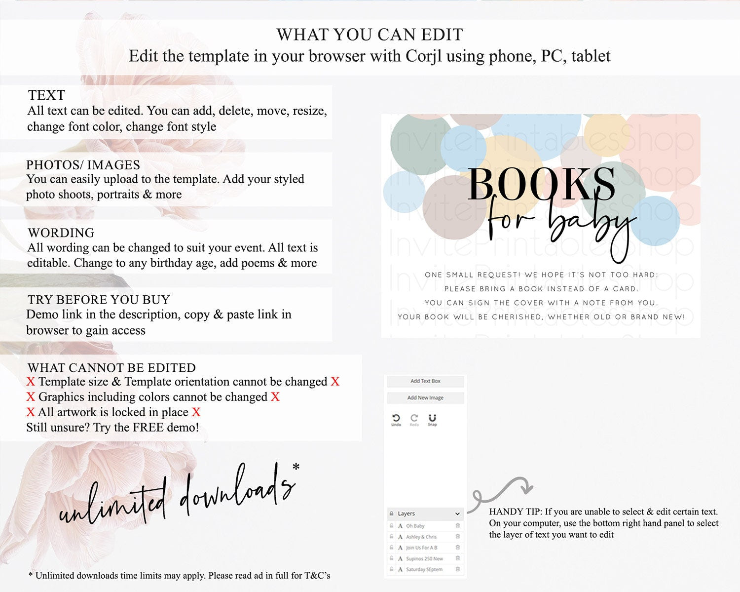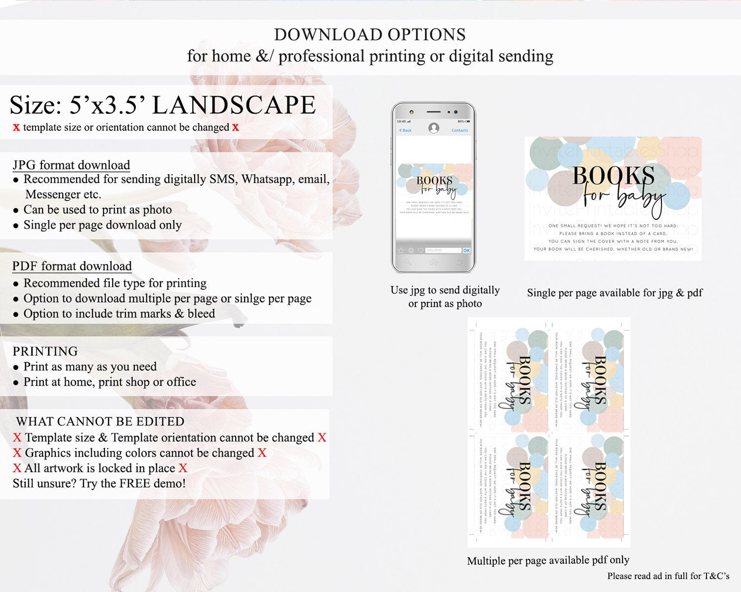 • Template size & orientation cannot be changed. Please use the demo link to confirm this product suits your needs.