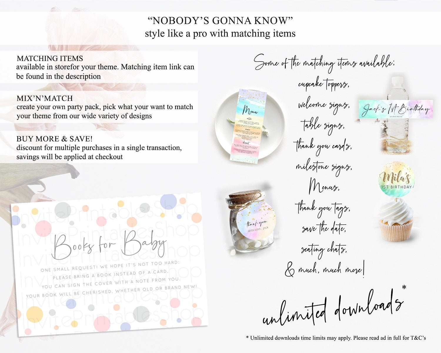 Rainbow Books For Baby Card Pastel Sprinkles Book Insert Pastel Rainbow Confetti Book Card Colorful Bubbles Pastel Book Poem Request D10759