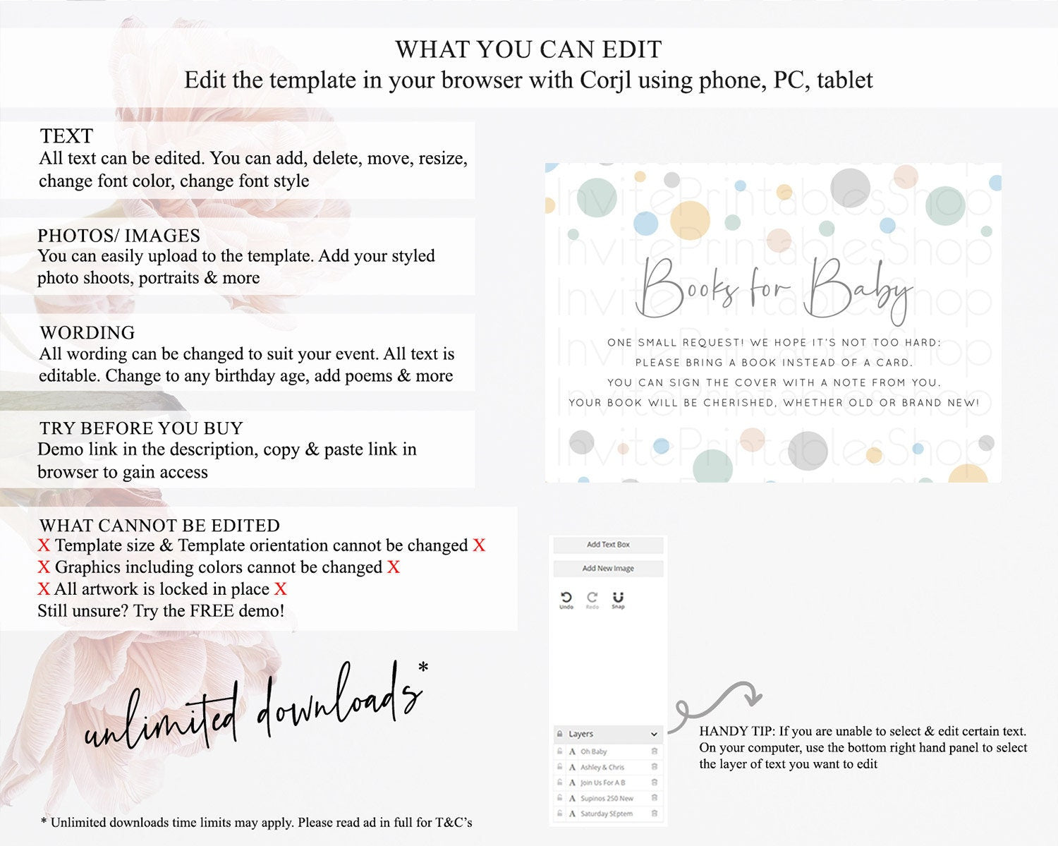 • After purchase, Corjl emails your editing link. Allow up to 15 minutes for delivery.