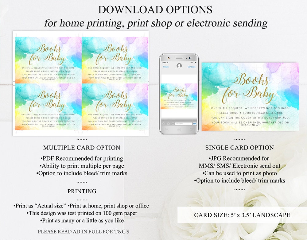 Rainbow Book Request for Baby Insert Pastel Baby Shower Book Card Colorful Watercolor Baby Books Request Poem Books Insert 140