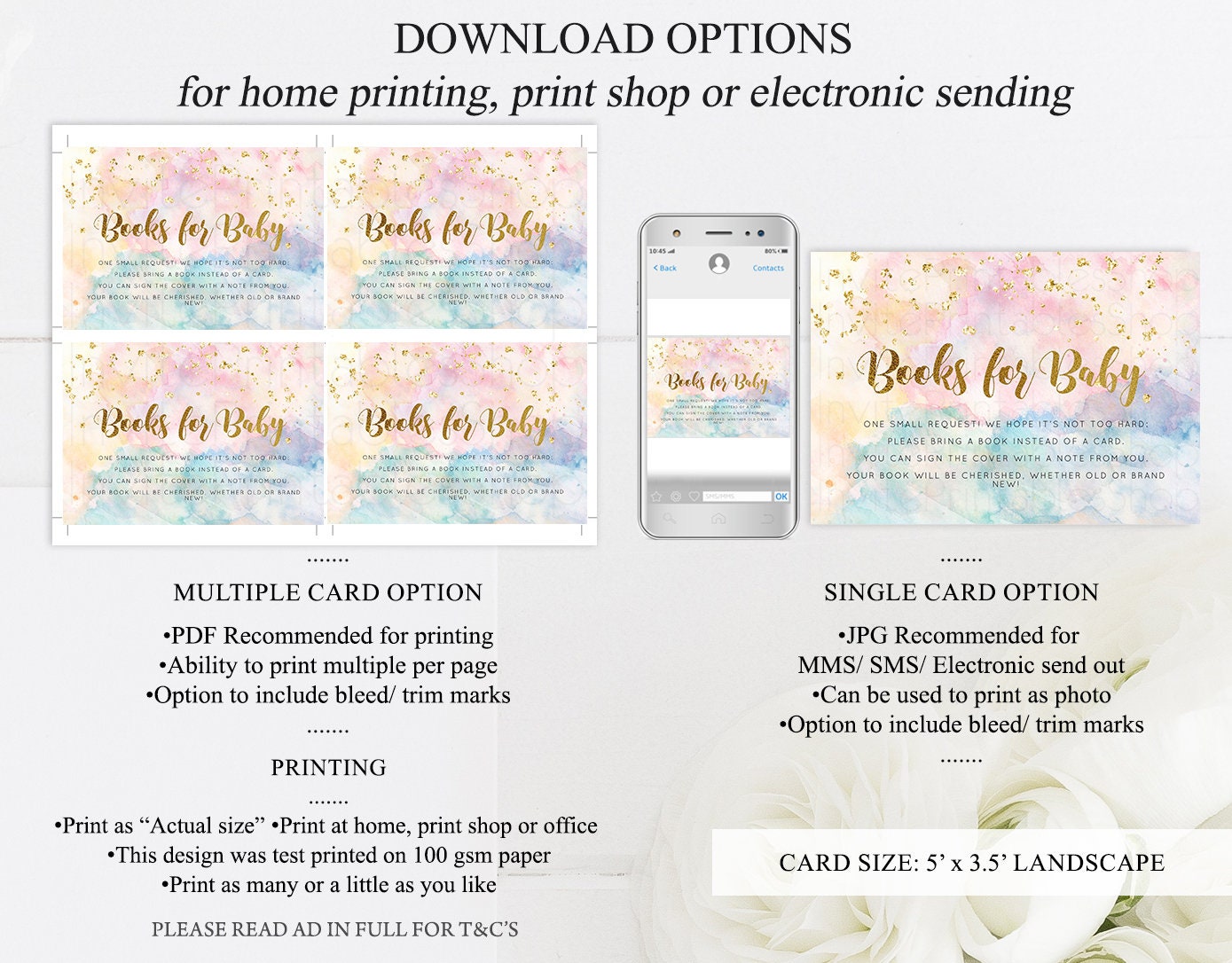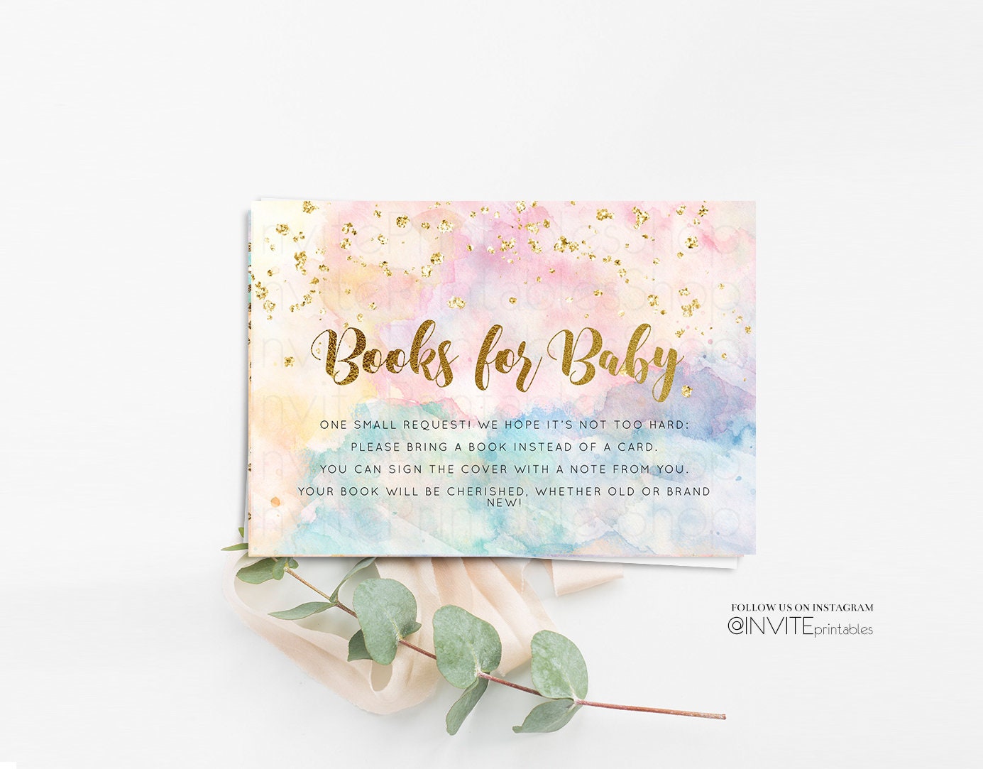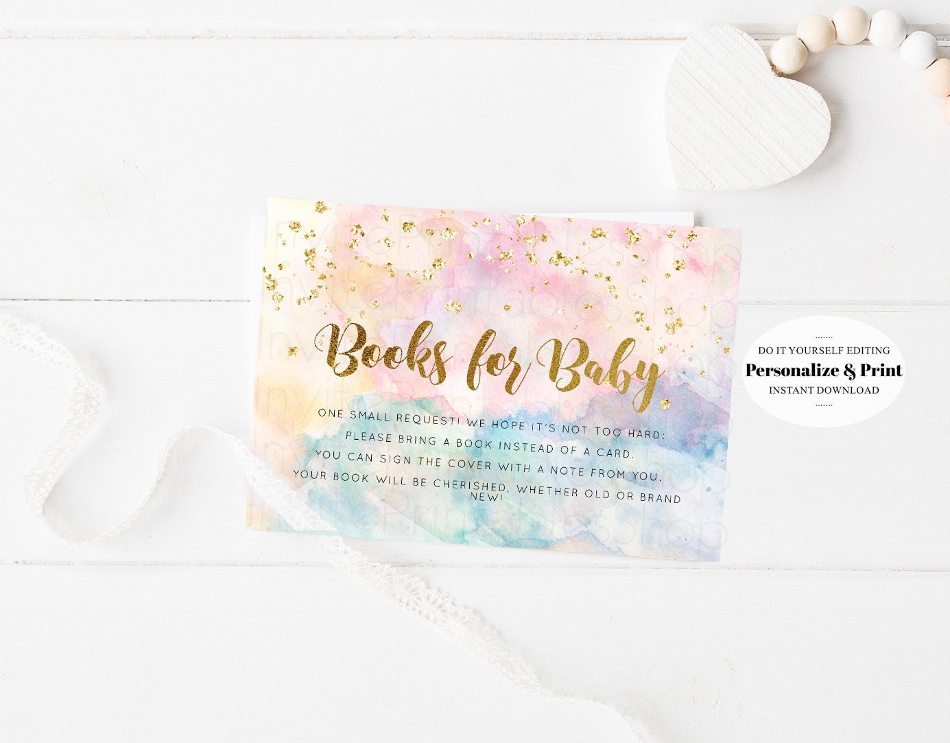 Rainbow Books for Baby Insert Pastel Books Insert Pastel Baby Shower Book Card Colorful Watercolor Baby Books Request Poem Books Insert 276
