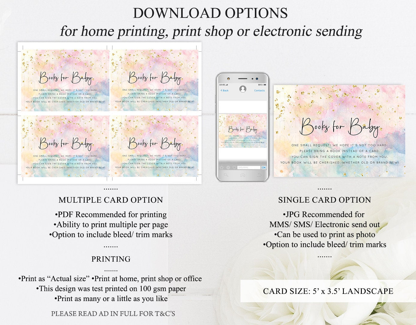 Rainbow Books for Baby Insert Pastel Books Insert Pastel Baby Shower Book Card Colorful Watercolor Baby Books Request Poem Books Insert 276
