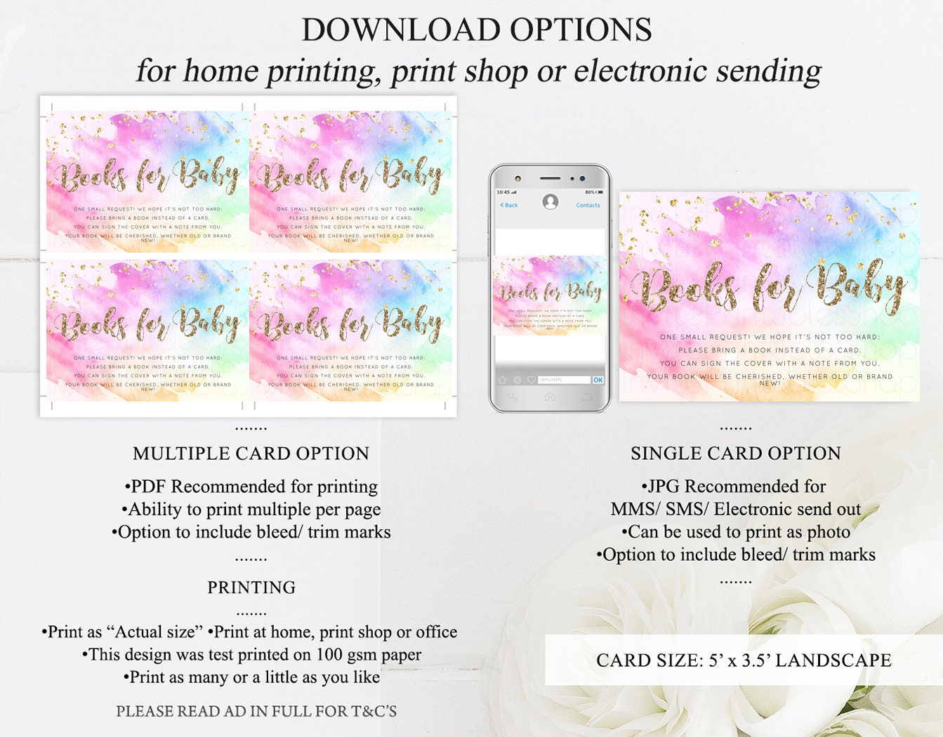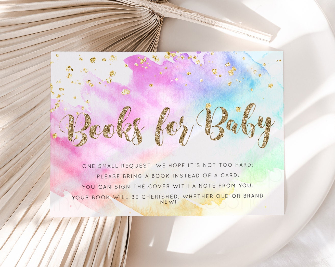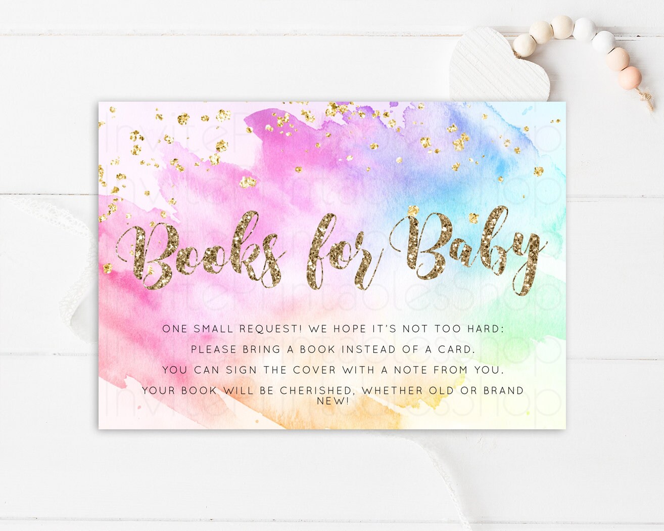 Rainbow Books for Baby Insert Pastel Books Insert Pastel Baby Shower Book Card Colorful Watercolor Baby Books Request Poem Books Insert g504