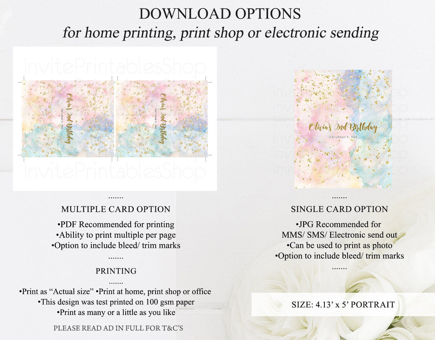 •Try before you buy! • DEMO LINK- https://www.corjl.com/d/5NFCIC MATCHING ITEMS: https://etsy.me/3llNMkz MATCHING ITEMS: https://etsy.me/3llNMkz PLEASE READ AD IN FULL!! •Digital file. No physical item will be shipped •Do it yourself Editing. Edit online with Corjl or Edit with your mobile ITEM DETAILS Chocolate Bar/ Candy Wrapper Wrapper size: 4.13’x5’ File type: PDF, JPEG Resolution: 300DPI PDF FILE OPTIONS: •Recommended for printing •Ability to print multiple per page (if size permits) •Option to include bleed/ trim marks JPG FILE OPTIONS: •Recommended for MMS/ SMS/ Electronic send out •Can be used to print as photo •Option to include bleed/ trim marks EDITING • Do it yourself editing • Mobile editing is available • Google chrome is the recommend browser for Corjl. Please download here for FREE: https://www.google.com/chrome/ • Using other browsers may not show all of Corjl's editing features • Editing on a desktop/ laptop computer is recommended to access all of Corjl features • Mobile editing is available, please use a desktop/ laptop computer to access all of Corjl features DOWNLOADS & EXPIRY •Maximum 3 downloads on the same edit •Link expires 30 days after purchase DOWNLOAD NOTICE •Once you have reached your download limits &/ “approve proof” in Corjl. You will not be able to request further downloads on your design. Further download requests are not permitted WHAT IS EDITABLE •Text - colours, fonts, size, move, delete & rotation. •Please see demo link for what you can and can’t do WHAT YOU CAN’T EDIT •Template size •Template orientation •Graphics CAN NOT BE deleted, moved, or changed in colour •Please see demo link for what you can and can’t do HOW TO 1. Choose design template & checkout on Etsy. 2. Email will be sent from Corjl. Follow link to access template 3. Edit, save & print INSTRUCTIONS •Instructions on how to edit your design have been written by Corjl and will be available with your purchase. PRINTING •Colours can vary depending on the monitor, printer & cardstock •Can be printed at home •Home printing will require you to select the high quality print settings, select appropriate paper thickness & click "Actual size" prior to you printing •This design was test printed on 100 gsm paper •Can be printed at local print shop. Please check printing requirements & any printing restrictions prior to purchase PERSONAL USE ONLY. This item cannot be shared, re-sold, or used commercially for profit. REFUND POLICY •We are unable to provide a refund/ exchange on commenced & completed work, instant downloads or self-editing link templates. Please use the demo link to work out if this product is right for you. Copyright © 2018 by InvitePrintablesShop PTY LTD All rights reserved. This file or any portion thereof may not be reproduced or resold without the express written permission of the publisher (including edits to the design). Our files are provided as high-resolution PDFs – the end result is dependent upon the printer and paper used. If using a professional printing company, InvitePrintablesShop are not responsible for their specific printing requirements, paper or colour quality. Any changes required to the template are not included with your purchase – the files come as described in the listing only and cannot be changed. Thank you for visiting Invite Printables Shop:) #abcdef12345
