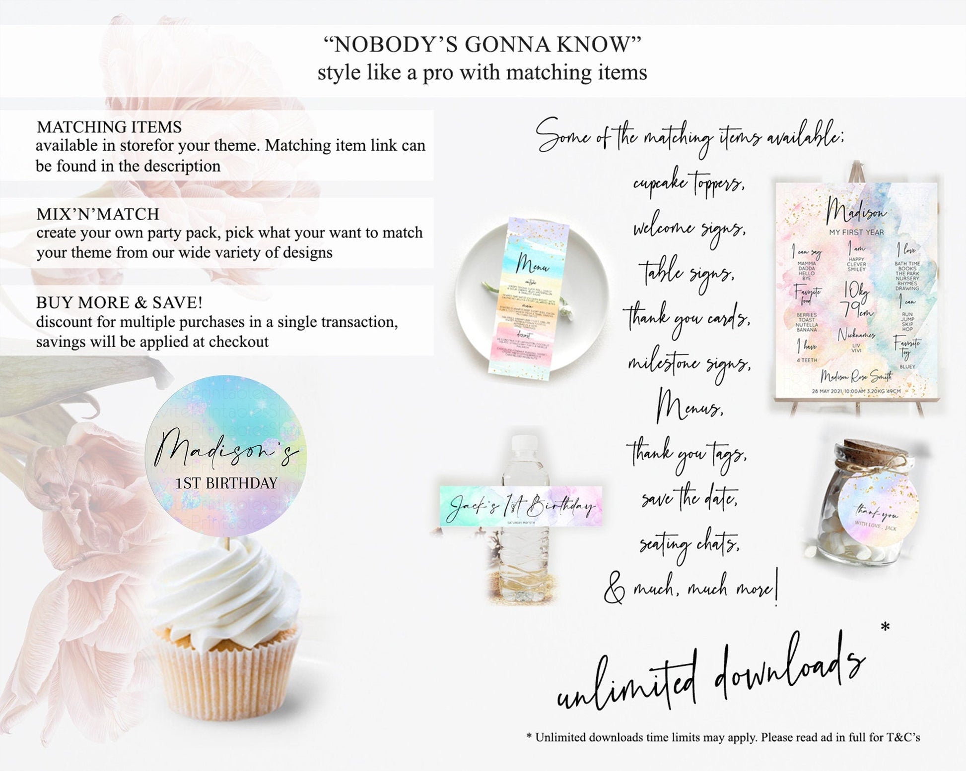 Rainbow Cupcake Toppers Pastel Cupcake Toppers Iridescent Sprinkles Colorful Pastel Watercolor Cupcake Ombre Pastel Cupcake Topper D10665