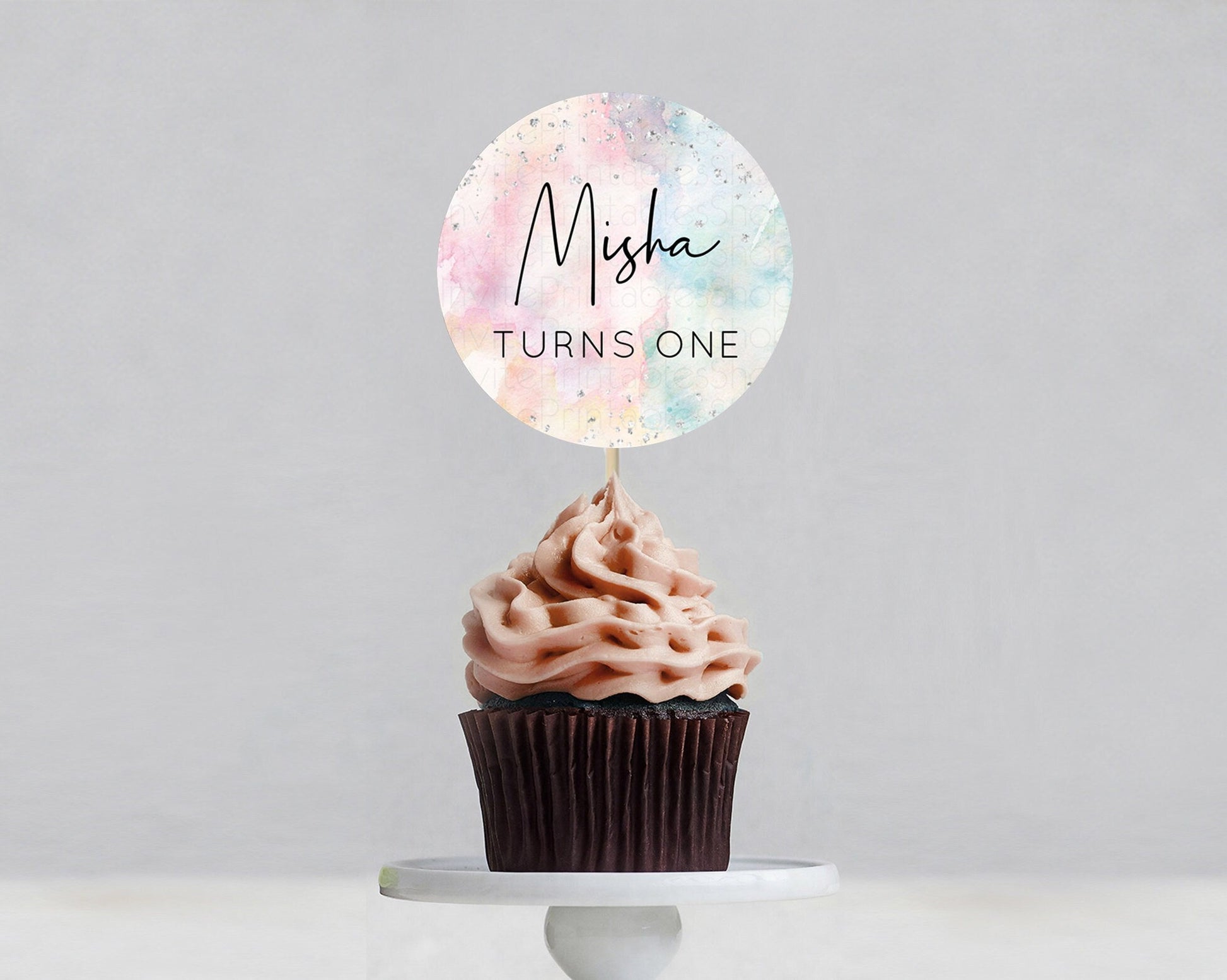 Silver Watercolor Cupcake Toppers