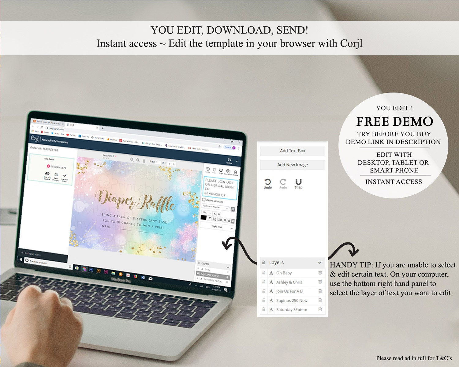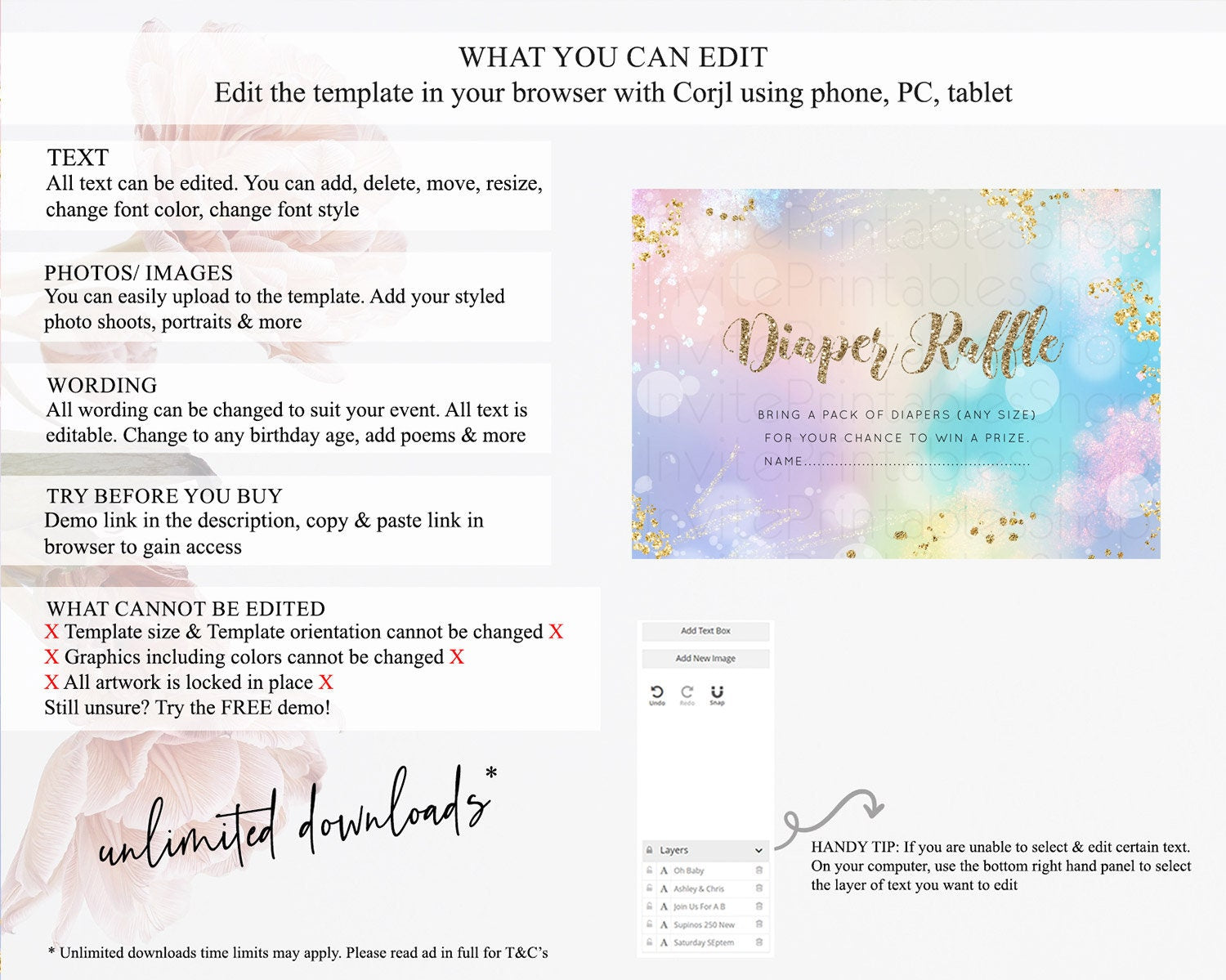 • After purchase, Corjl emails your editing link. Allow up to 15 minutes for delivery.