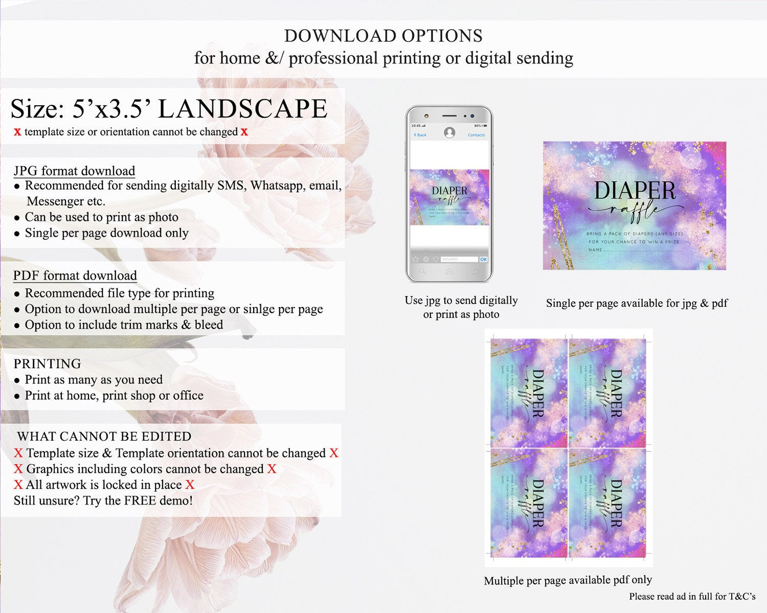 • Template size & orientation cannot be changed. Please use the demo link to confirm this product suits your needs.