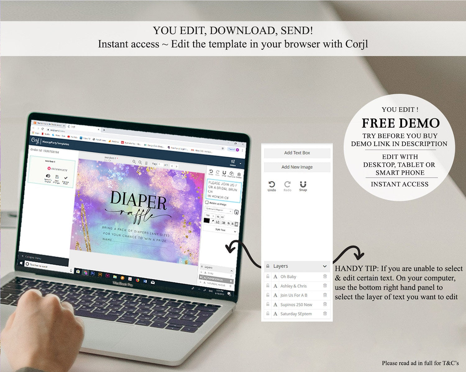 • After purchase, Corjl emails your editing link. Allow up to 15 minutes for delivery.